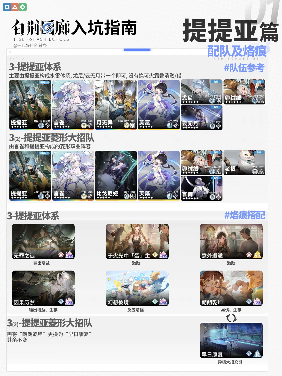 大家好,这里是一包好吃的辣条! 本期是白荆回廊半周年UP角色『提提亚』的配队及烙痕搭配攻略~ ————————————— 如有遗漏/错误欢迎指出,共同进步~ —————————————