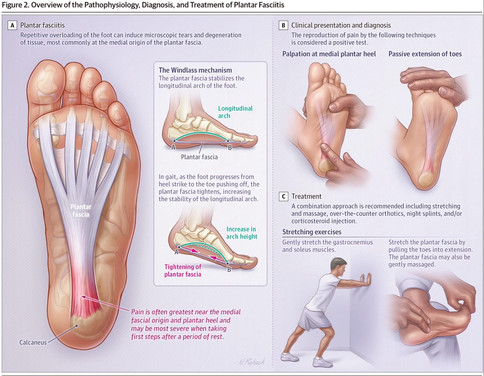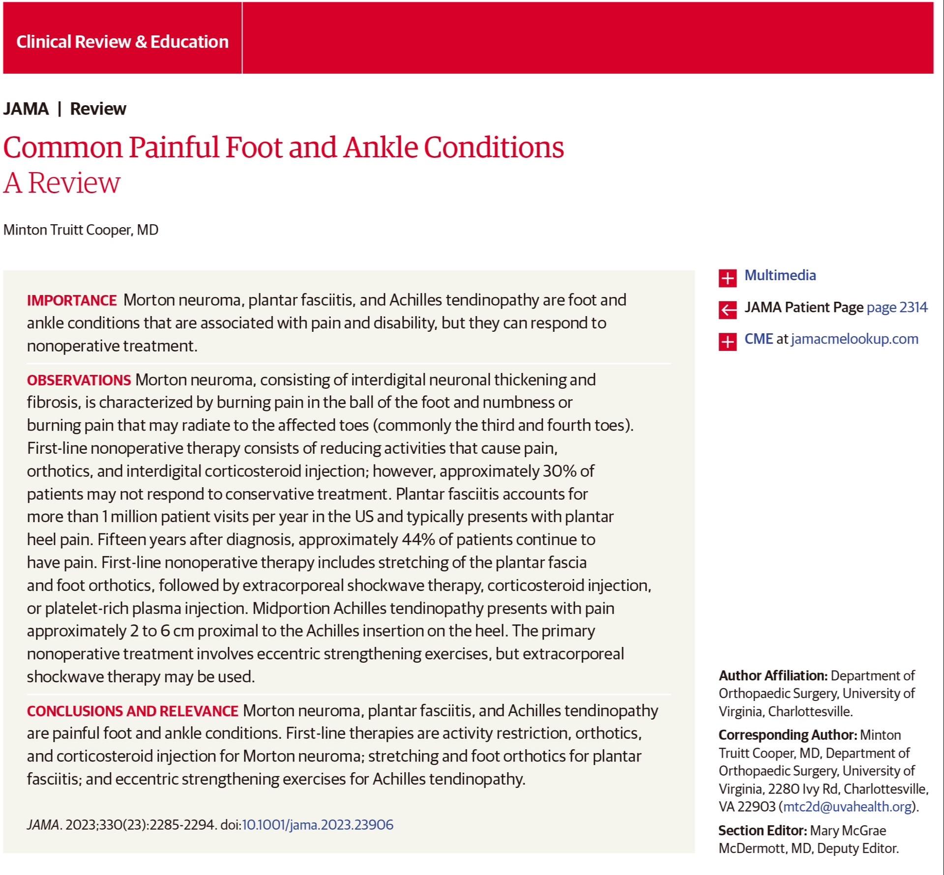 2023JAMA 综述。足踝部疼痛的3种常见疾病:莫顿神经瘤(跖间神经瘤)、足底筋膜炎和跟腱病。