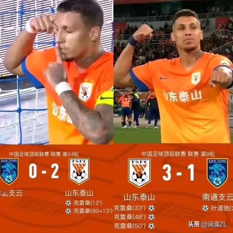 选谁不好!支云球迷非得拿泰山队当成死敌,赛前嘴硬,赛中激光笔照射,赛后哑口无言。 南通支云本赛季被泰山队完成双杀,两度交手,克雷桑首战帽子戏法,次战梅开二度,堪称南通第一杀手。