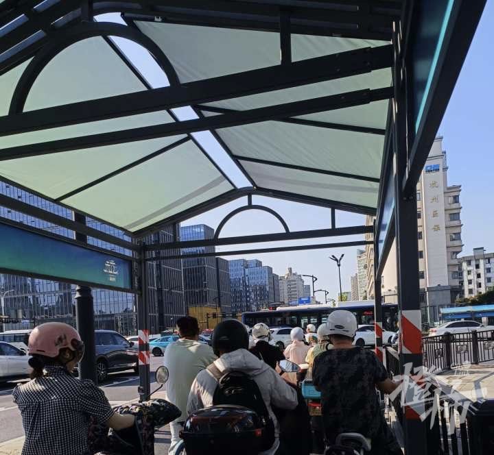 东新路文晖路路口装上了遮阳棚