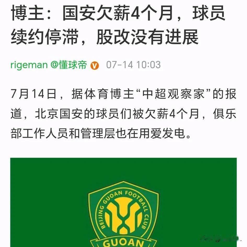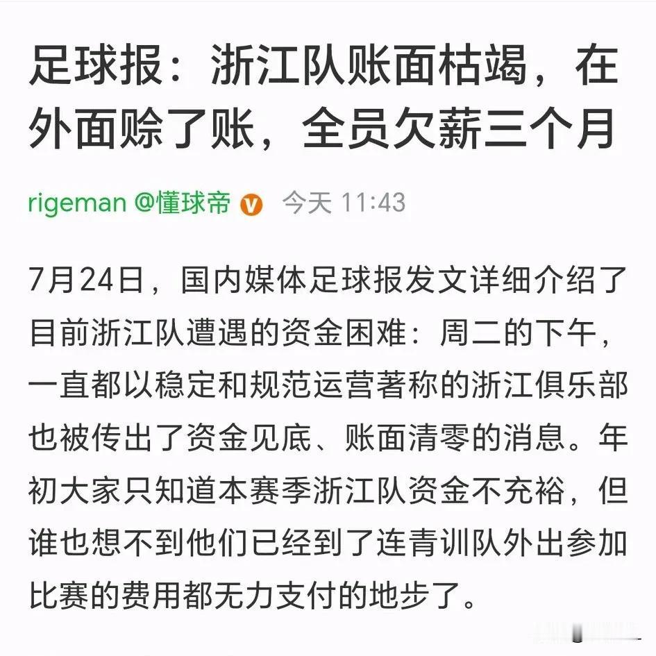 今年的中超纯属胡闹,到底还有几个队是认真踢的?怪不得动不动就大比分输球。 三支强队山东泰山出现补税问题;北京国安出现欠薪现象;浙江现在又被爆账面枯竭。其他中下游球队武汉三镇、南通支云等多支球队资金也好不到哪里去,球员没保障了,哪来的动力去认真踢球?