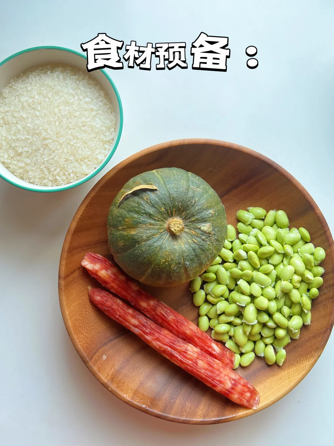 2️⃣南瓜用盐搓洗一下,取瓤切块,姜切丝,香肠切段