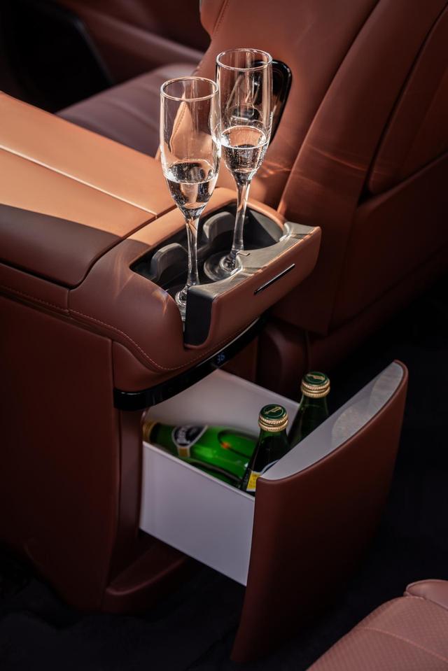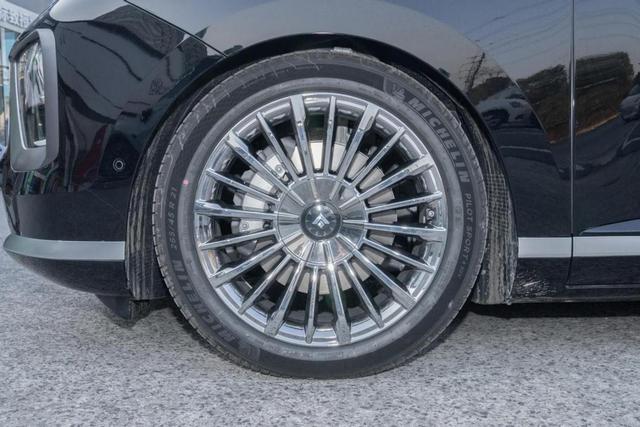 21寸桨式轮毂正中的“静态徽标”很有趣,会在车轮转动过程中始终朝上,颇有“大劳”风范;商务场景下,客户从车门迎宾光毯进入车内,电吸门轻柔合上,凸显高级感。