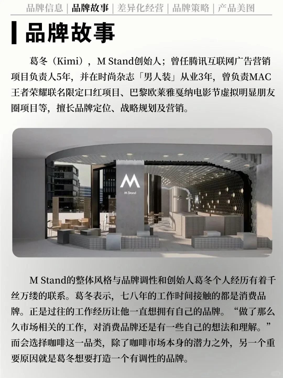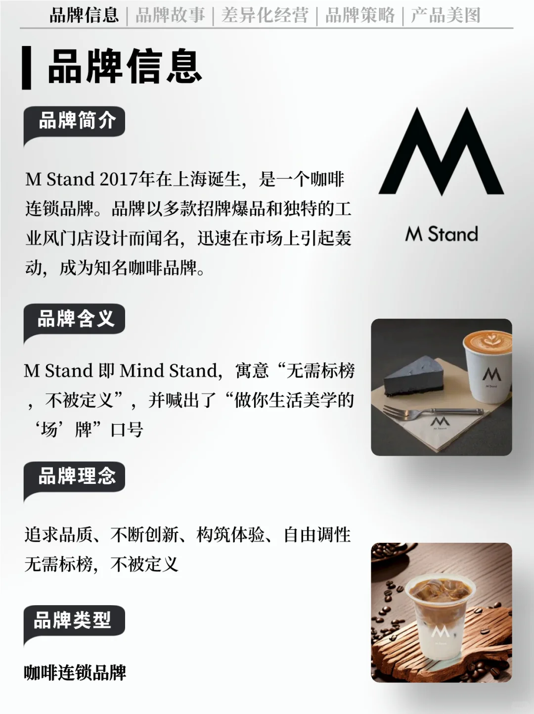 M Stand 2017年在上海诞生,是一个咖啡连锁品牌。品牌以多款招牌爆品和独特的工业风门店设计而闻名,迅速在市场上引起轰动,成为知名咖啡品牌。