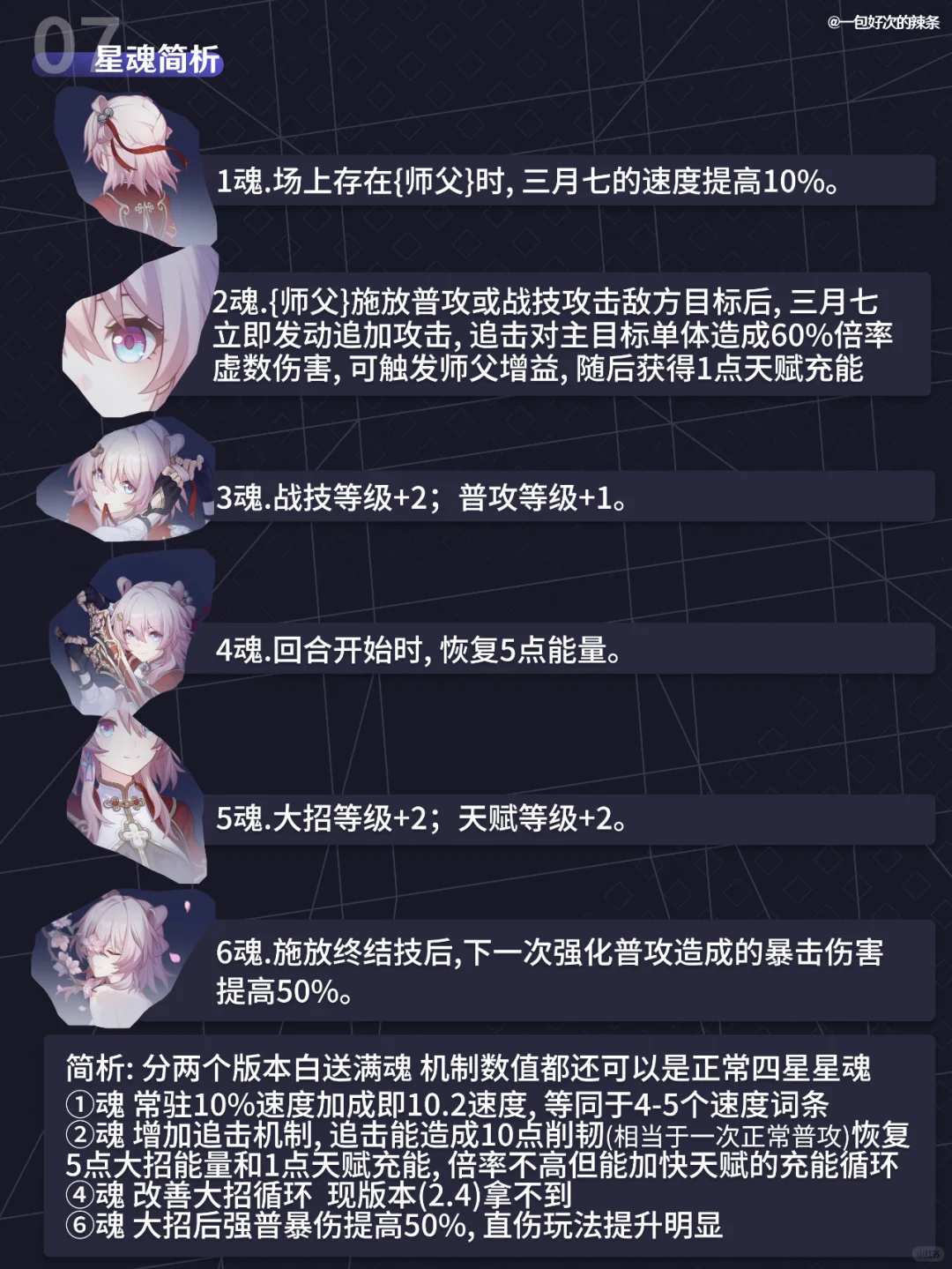大家好,这里是一包好次的辣条! 本期带来的是『三月七-巡猎 』培养指南 ————————————— 如有遗漏/错误欢迎指出,共同进步~ 最近新玩家/回坑玩家多,大家友善讨论哦~ —————————————