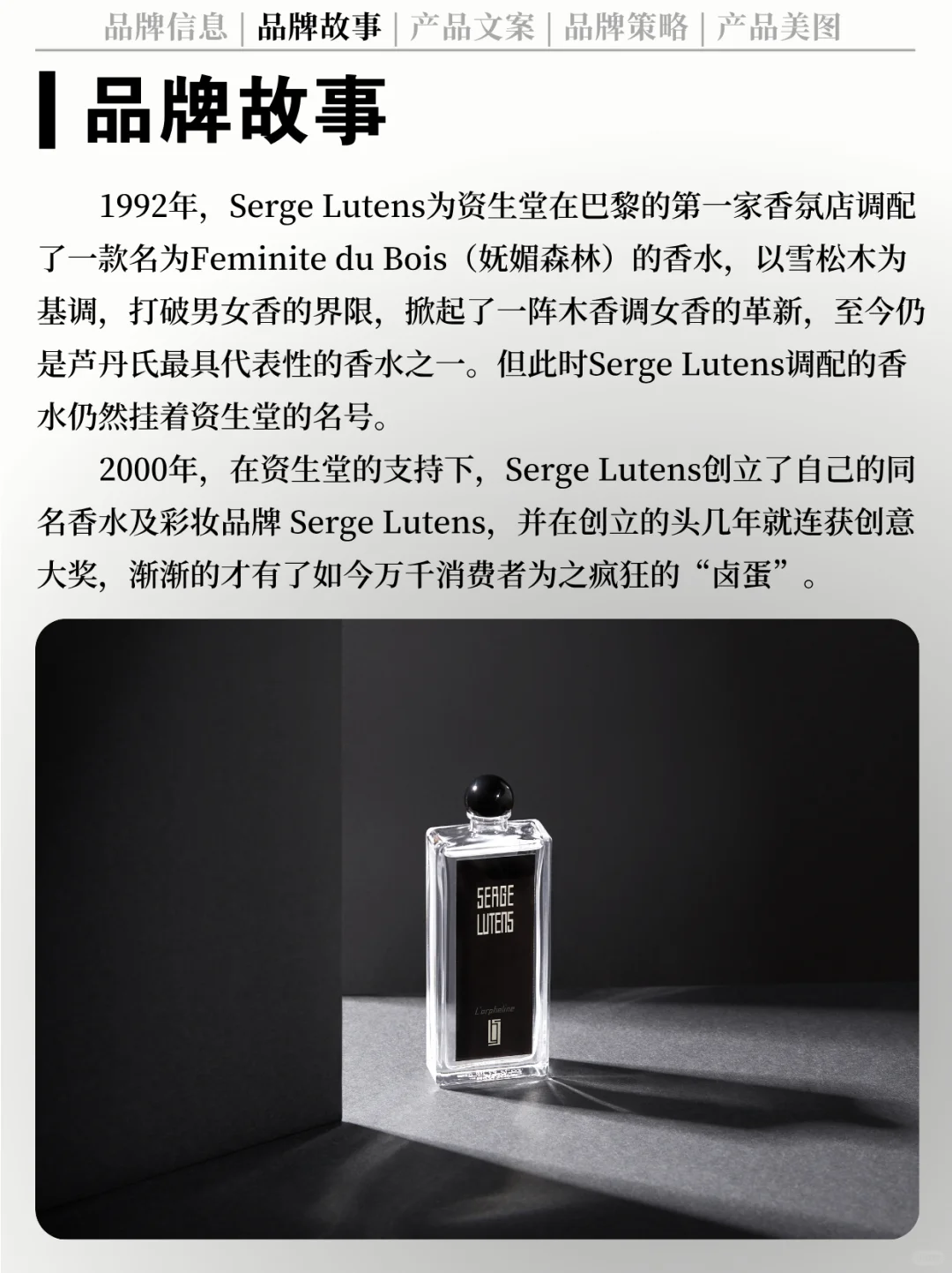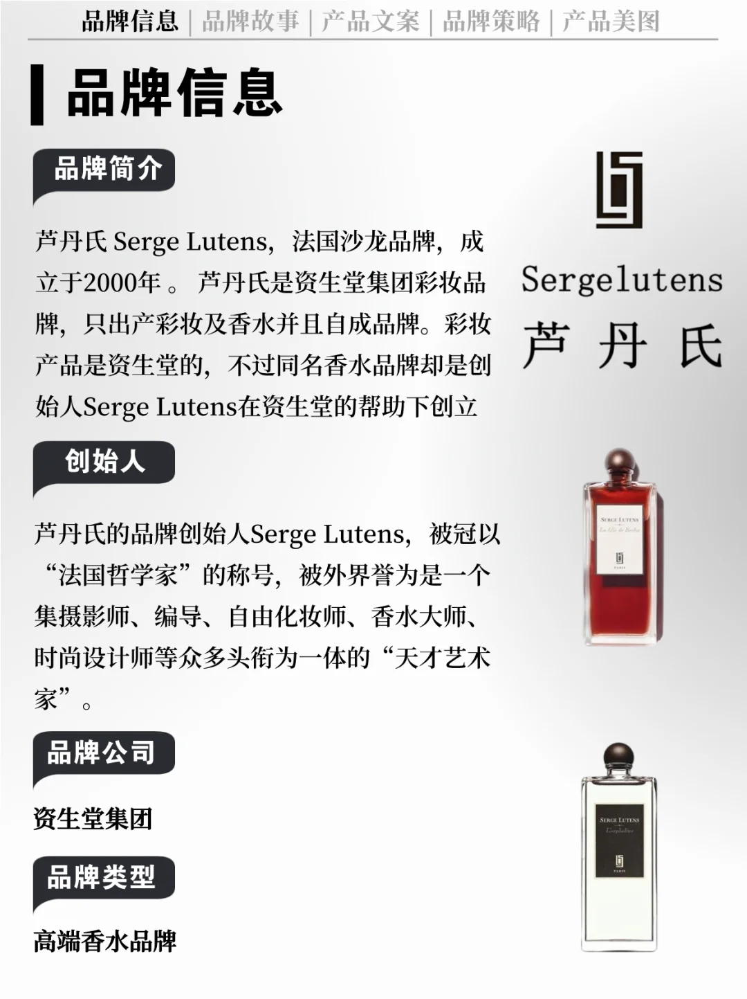 [向右R] 芦丹氏 Serge Lutens,法国沙龙品牌,成立于2000年 。 芦丹氏是资生堂集团彩妆品牌,只出产彩妆及香水并且自成品牌。彩妆产品是资生堂的,不过同名香水品牌却是创始人Serge Lutens在资生堂的帮助下创立!