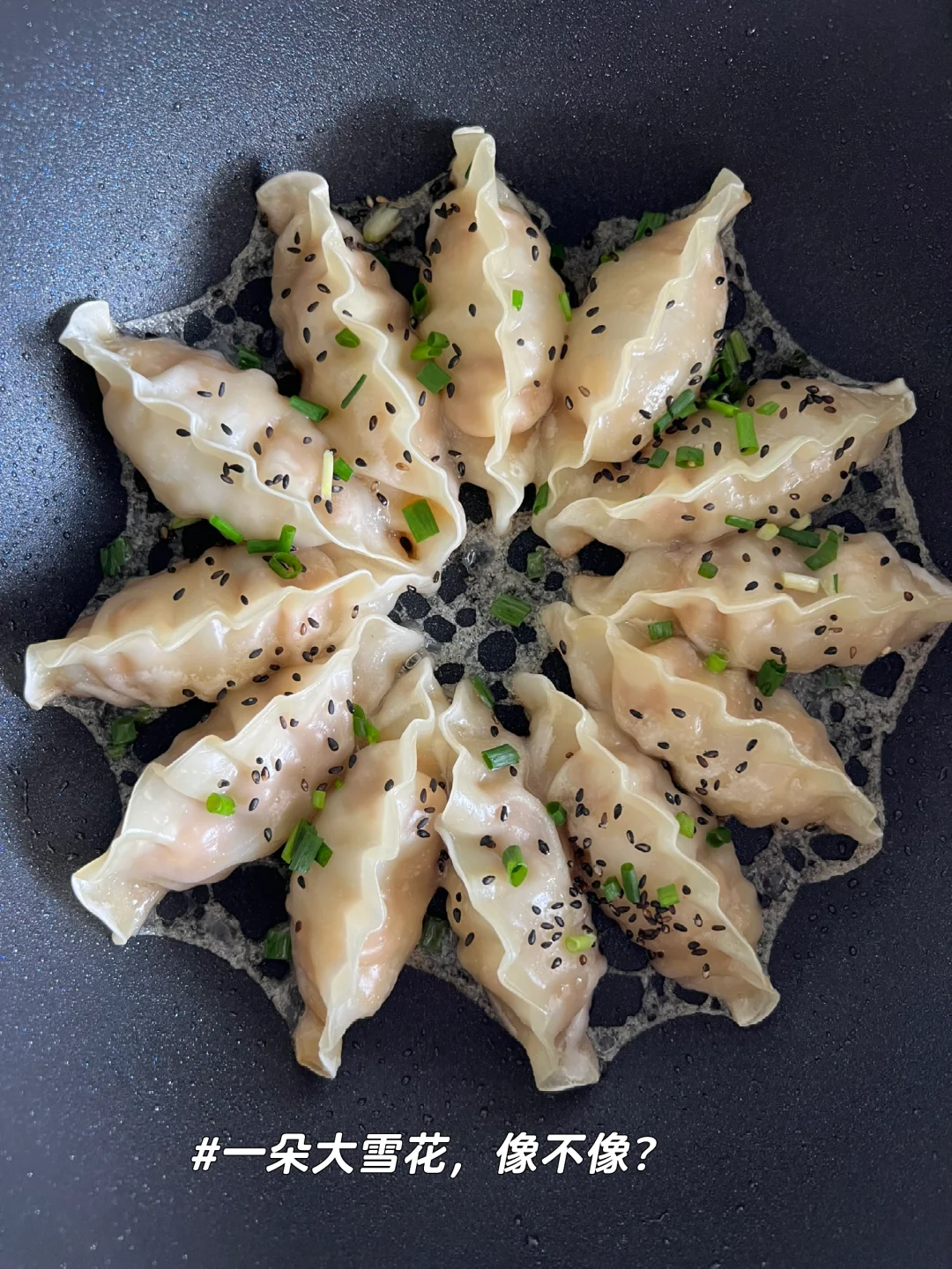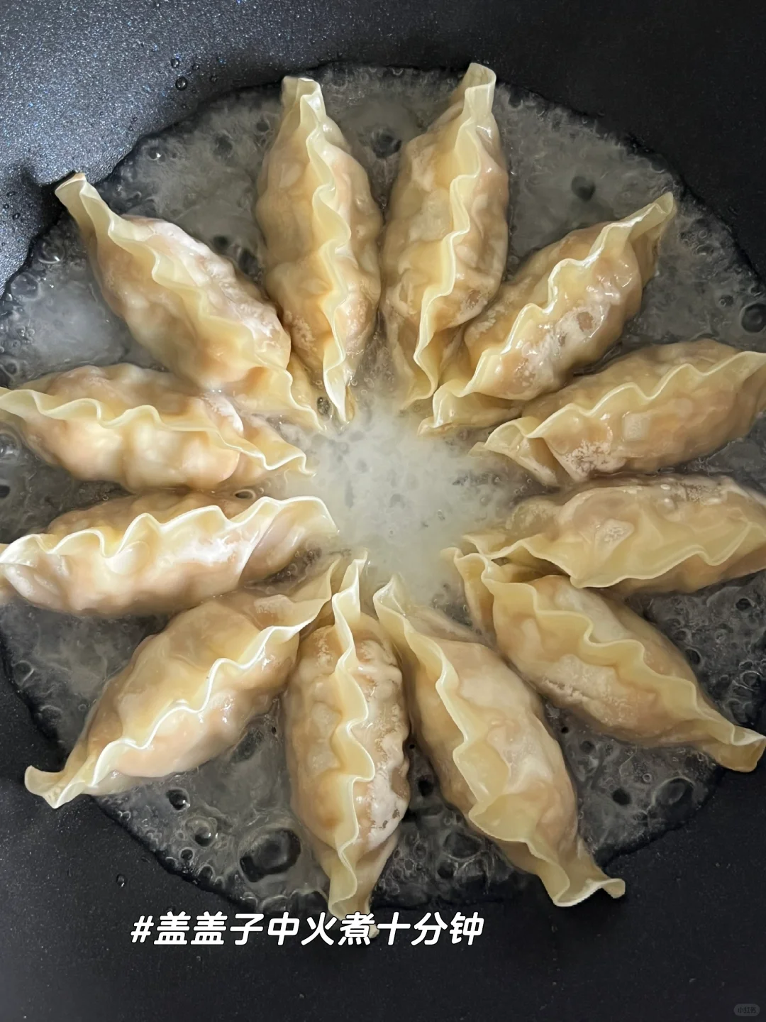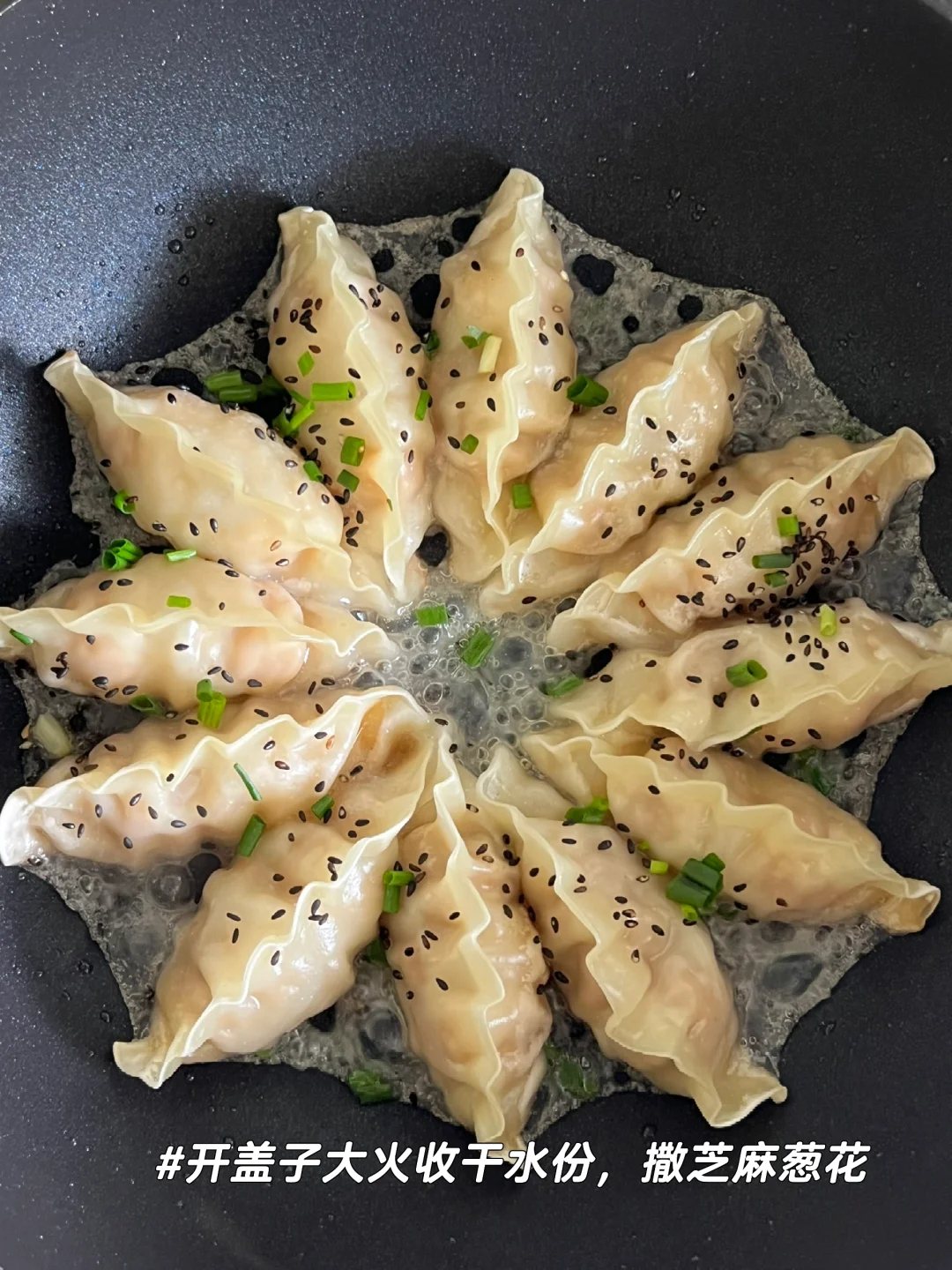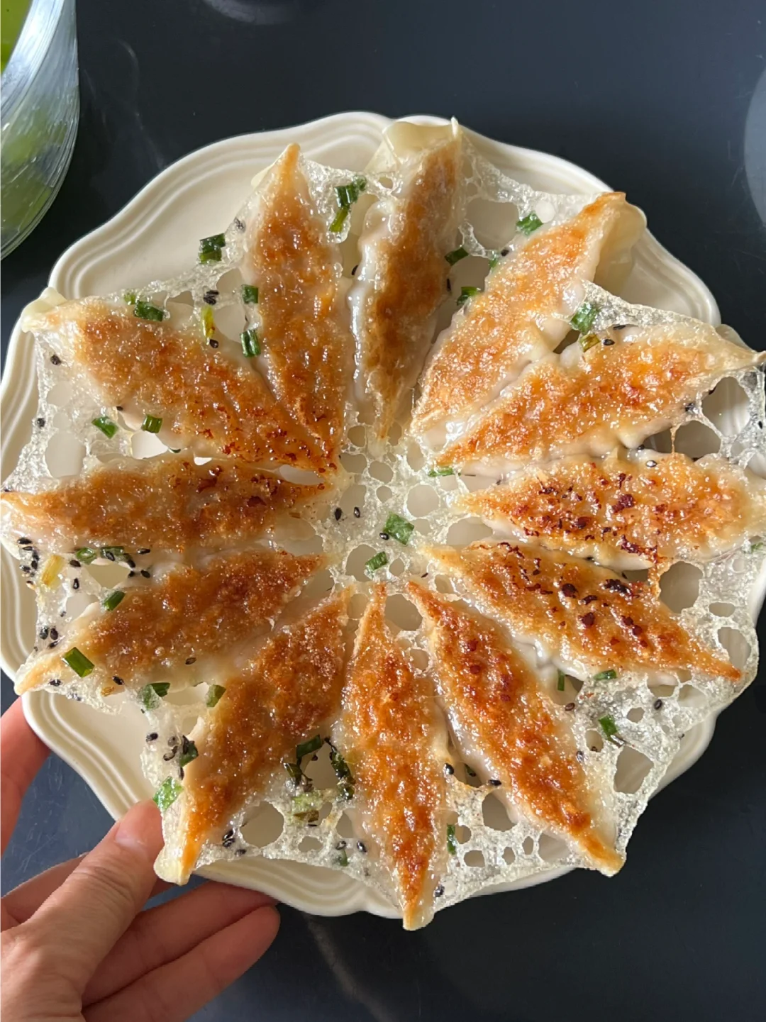 热气腾腾的三餐 今天做了冰花水饺🥟 外皮脆脆的,🥟香香的 搭配小米粥很不错👍👍 食材: 冰冻饺子 淀粉水:一勺淀粉、小半碗水,搅拌均匀 方法: 1️⃣饺子不用解冻,锅里放油,整齐码上饺子,小火慢煎一会,直到饺子底部微焦 2️⃣均匀倒入淀粉水,调至中火,盖上盖焖煮十分钟 3️⃣最后用大火收汁,饺子连带冰花可以脱离锅转动时就可以撒芝麻和葱花啦! 4️⃣借助盘子,倒扣出锅即可