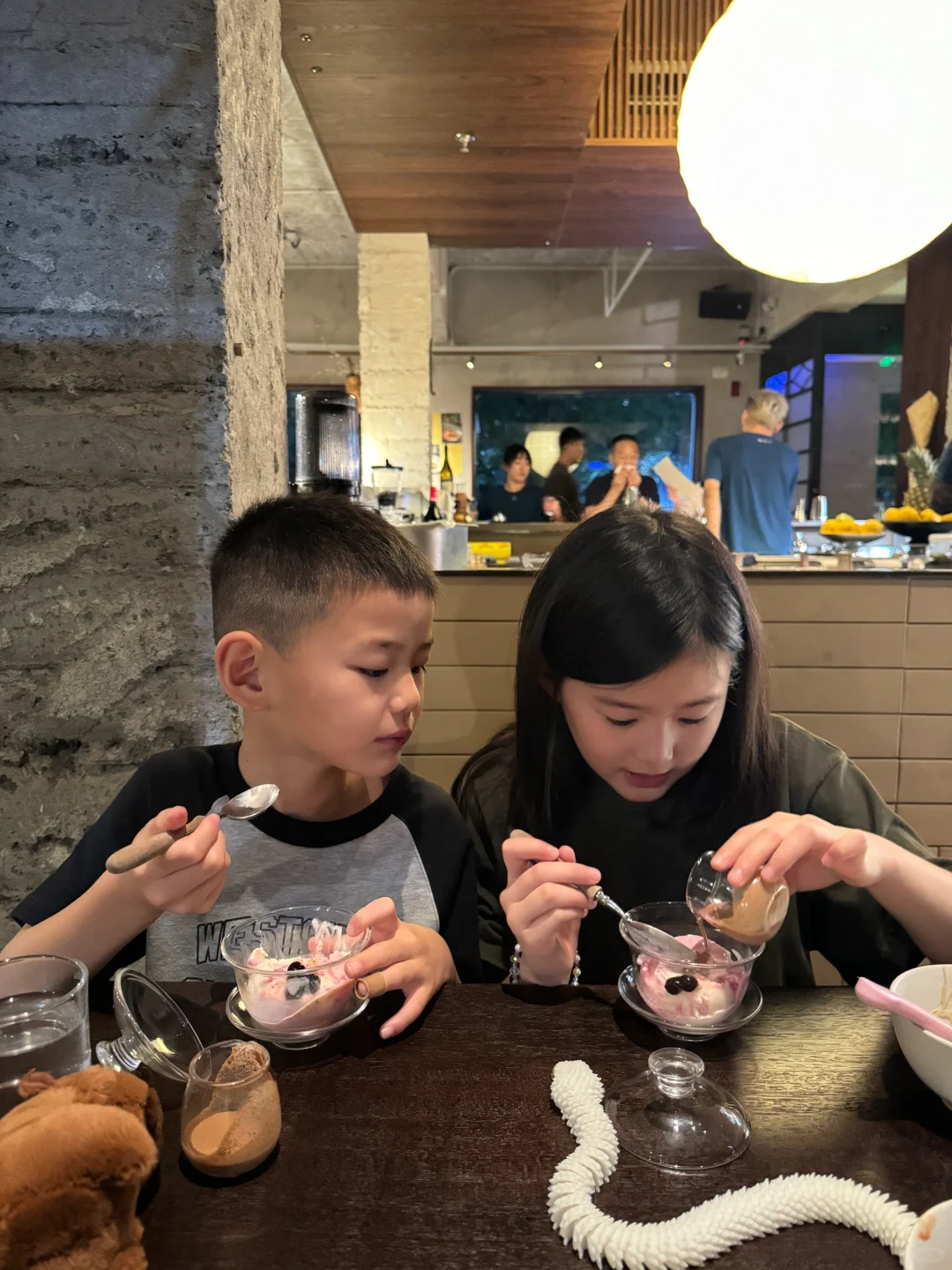 回北京以后好吃的太多了,姐姐是肉眼可见的圆乎了,俩月胖了将近十斤[捂脸R][捂脸R][捂脸R][捂脸R] 如果说姐姐是小饭渣,弟弟就是超级饭渣,这也不吃那也不吃的,没吃过的根本不想尝试,就对美食非常没有欲望。 今天打卡福屿这家宝藏店铺,俩娃第一次吃福建菜,从都不吃虾的弟弟自己吃了一盘的荔枝酱虾肉,姐姐是第一次吃米粉,二姨的海鲜炒米粉她自己干了一盘子,我跟老板说你家是真的好吃,能让我家这俩饭渣吃这么多真不容易啊[偷笑R][偷笑R][偷笑R] 我喜欢肥牛沙茶锅,就是有丢丢小辣,娃吃不了。甜品酒水都很完美,值得一去[点赞R]