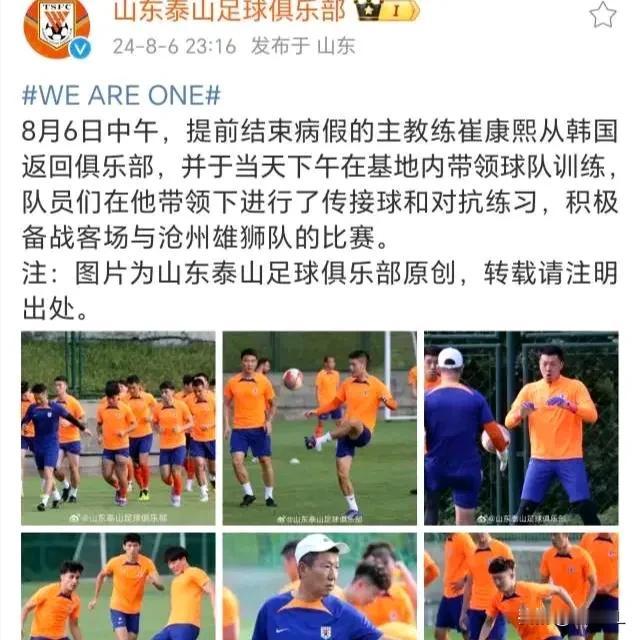 胡乱!崔康熙到底是休假还是病了?山东泰山俱乐部官方也没搞清楚吗? 8月6日,