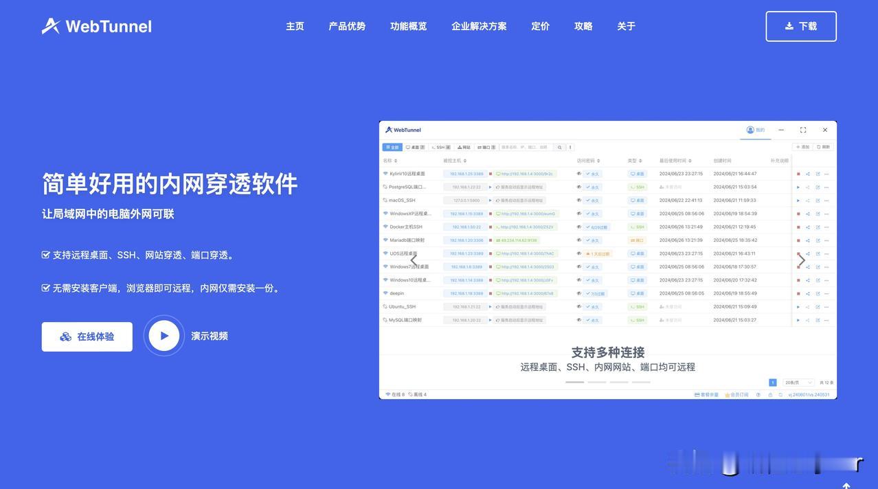 一些小伙伴会好奇,为什么 WebTunnel 在新建的时候,账号类型提供了“预置”和“访问时输入”两种方式呢? 其实,这两种的使用场景是有一些区别的: 1、预置:需要你提前将操作系统的账号录入,访问者仅需要输入访问密码即可。这种场景适合让第三方用户访问,可以避免对方知道你的操作系统密码。 2、访问时输入:需要在访问时输入操作系统的账号,这种场景是给自己用的,每次登录更安全一些,也方便不同账号间的切换。 小伙伴们要是有其他好的功能建议,欢迎提出喔,也欢迎加入我们的技术交流Q:894662394,一起交流和分享~