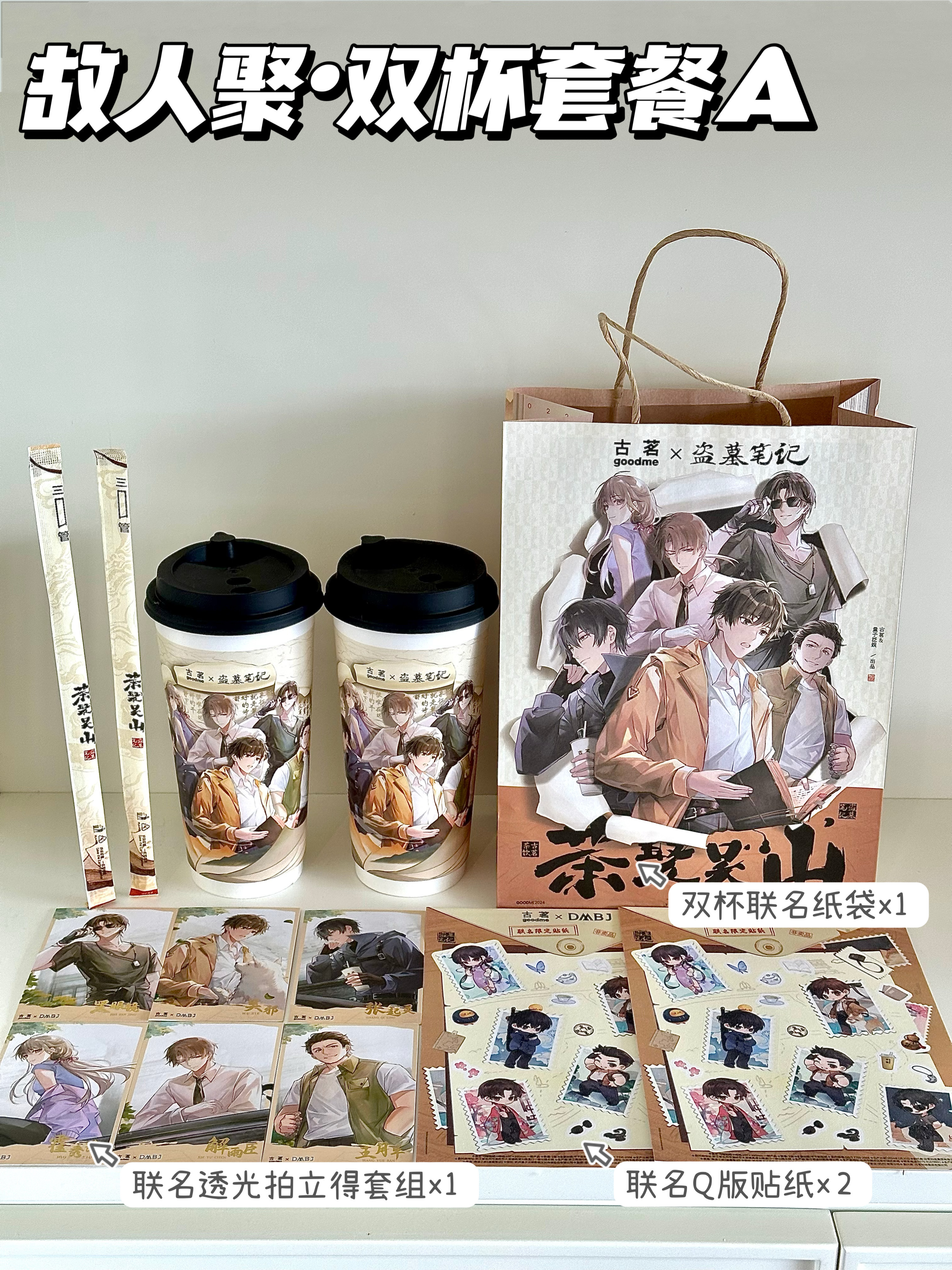 直接把3个套餐收入囊中!这次的联名系列每一款周边都戳中了我的心巴~Q版的联名贴纸覆了一层细闪膜,质感太绝啦!联名透光收藏卡:用了透光工艺,太精致了!而且还有铁三角各自代表的图腾,真的好细节好用心!联名透光拍立得套组:很厚实,和联名透光收藏卡一样,每个人都有对应的图腾,很有层次感! 联名透卡套组:每张都能单独打卡,放在一起就是大合照!古茗你的用心我感受到了~