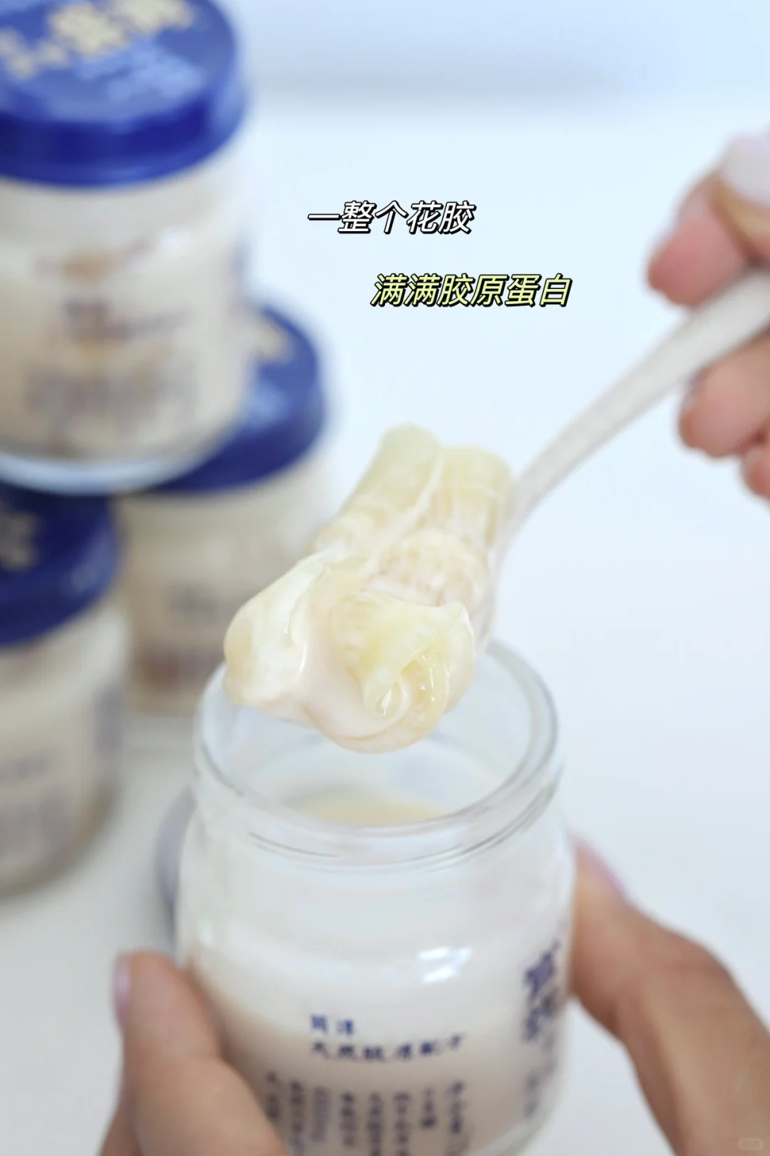 花胶都是大块饱满的,吃到嘴里QQ 弹弹,一点也没有🈚️腥气,平时就冷藏储存,吃的时候隔水加热一下就好啦,我太爱这种口感了,一天一瓶,超级期待每天吃花胶的时候~