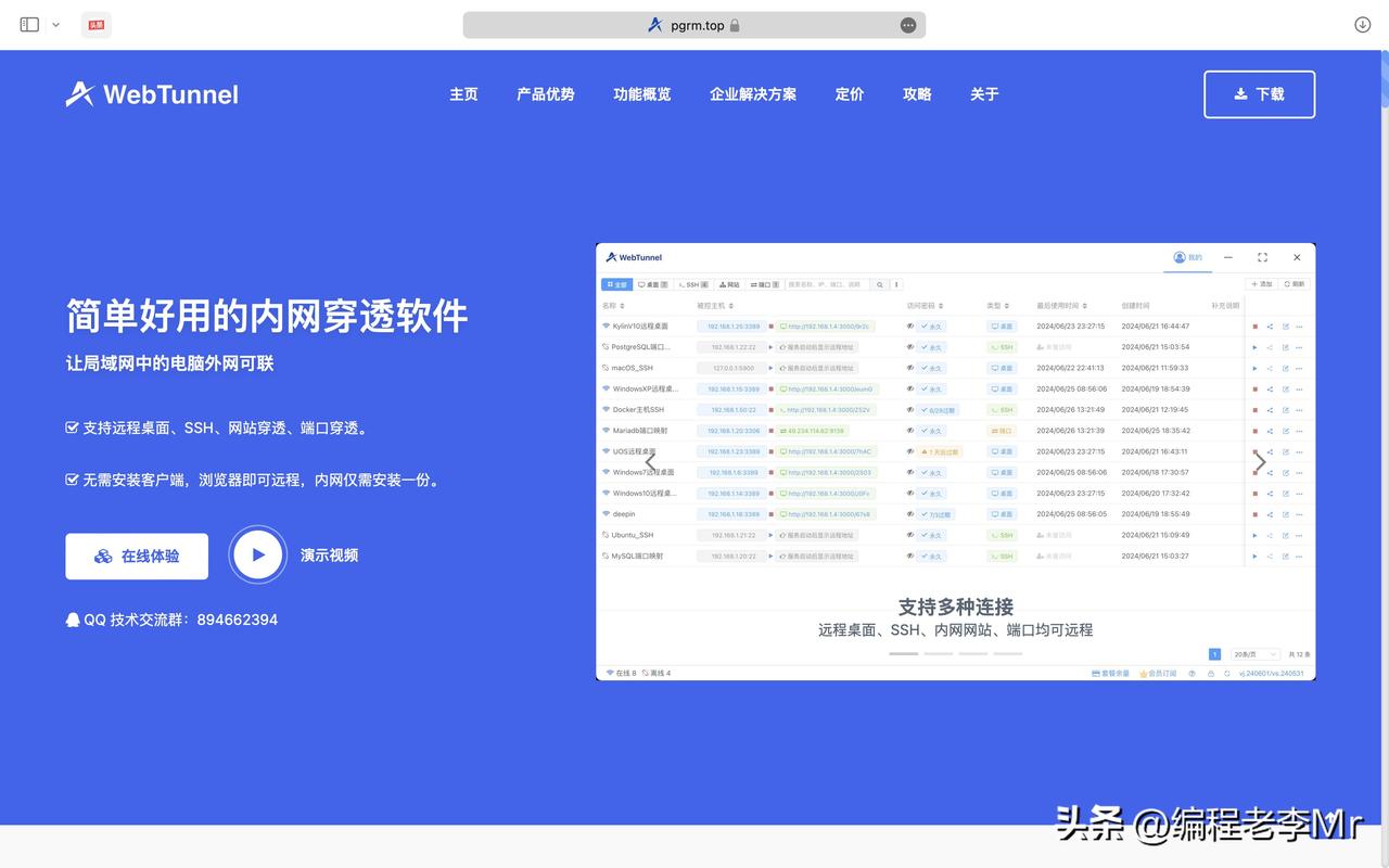 周末用 docker 重构了内网穿透隧道的部署方式,目前仅需一行 docker 命令即可自动化部署 WebTunnel 所需的隧道服务器了。 目前隧道服务包含了三个容器,分别是: 1、webtunnel_connector:提供访问页面,连接代理和 web rdp、web ssh 的服务。 2、webtunnel_proxy:提供内网穿透代理的功能。 3、webtunnel_guacd:提供 web rdp、web ssh 的协议转换功能。 为啥要做这个呢? 因为考虑到之前有些用户需要自建隧道,不想使用公共隧道,可能考虑速度和安全性的缘故。 这下好了,只要你有一台 2C2G 的公网服务器,一分钟部署好自己私有的隧道,让 WebTunnel 客户端直连,畅享高速、优质的个人内网穿透服务[憨笑]