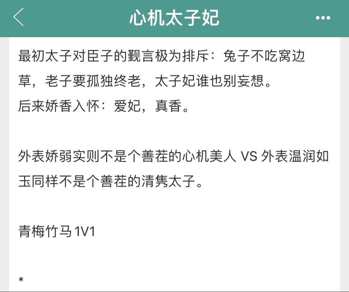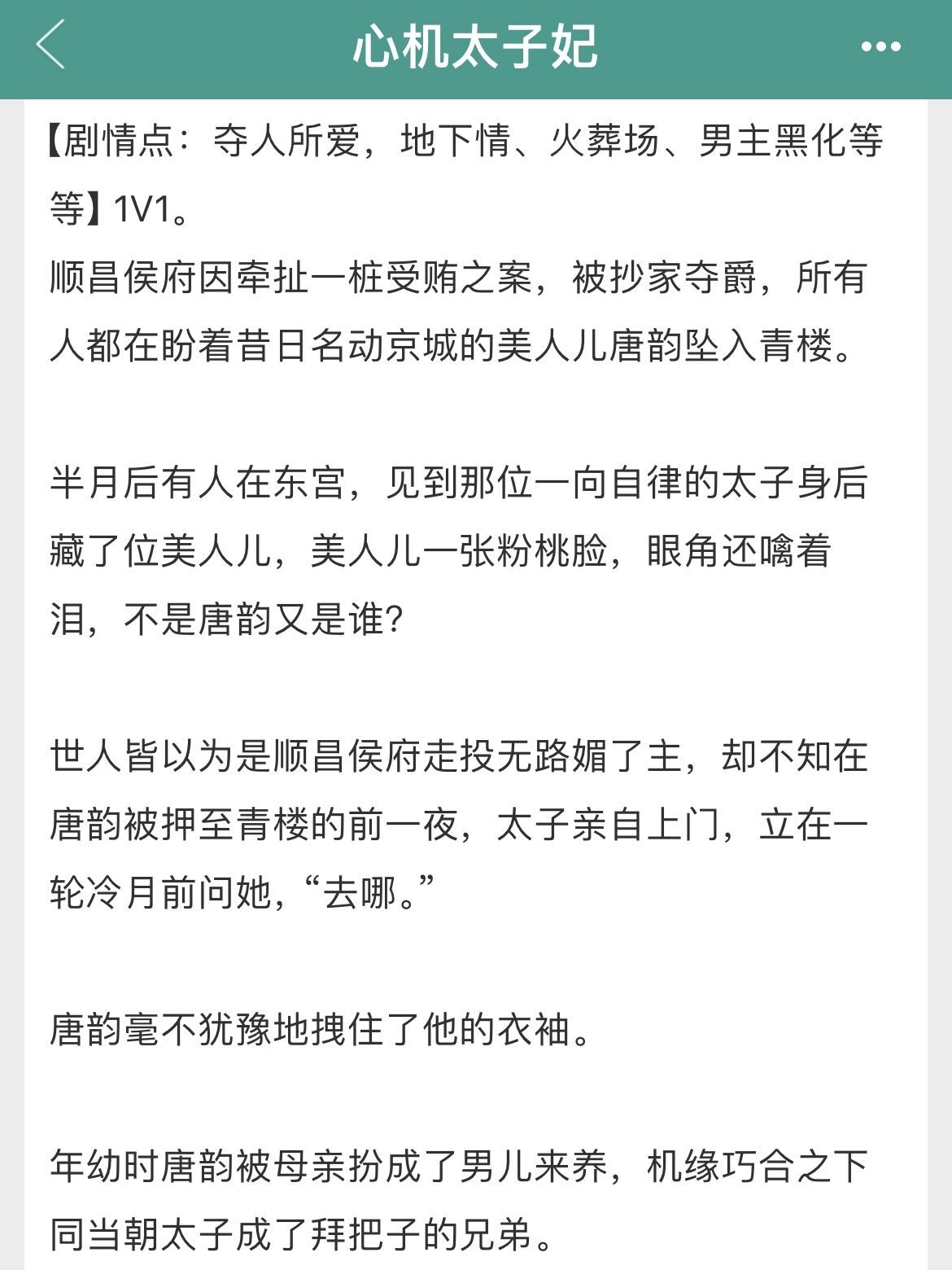 夺人所爱+地下情+火葬场+男主黑化!夺人所爱+地下情+火葬场+男主黑化! 书名:《心机太子妃》 作者:起跃 标签:甜文、爽文、正剧 【剧情点:夺人所爱,地下情、火葬场、男主黑化等等】1V1。