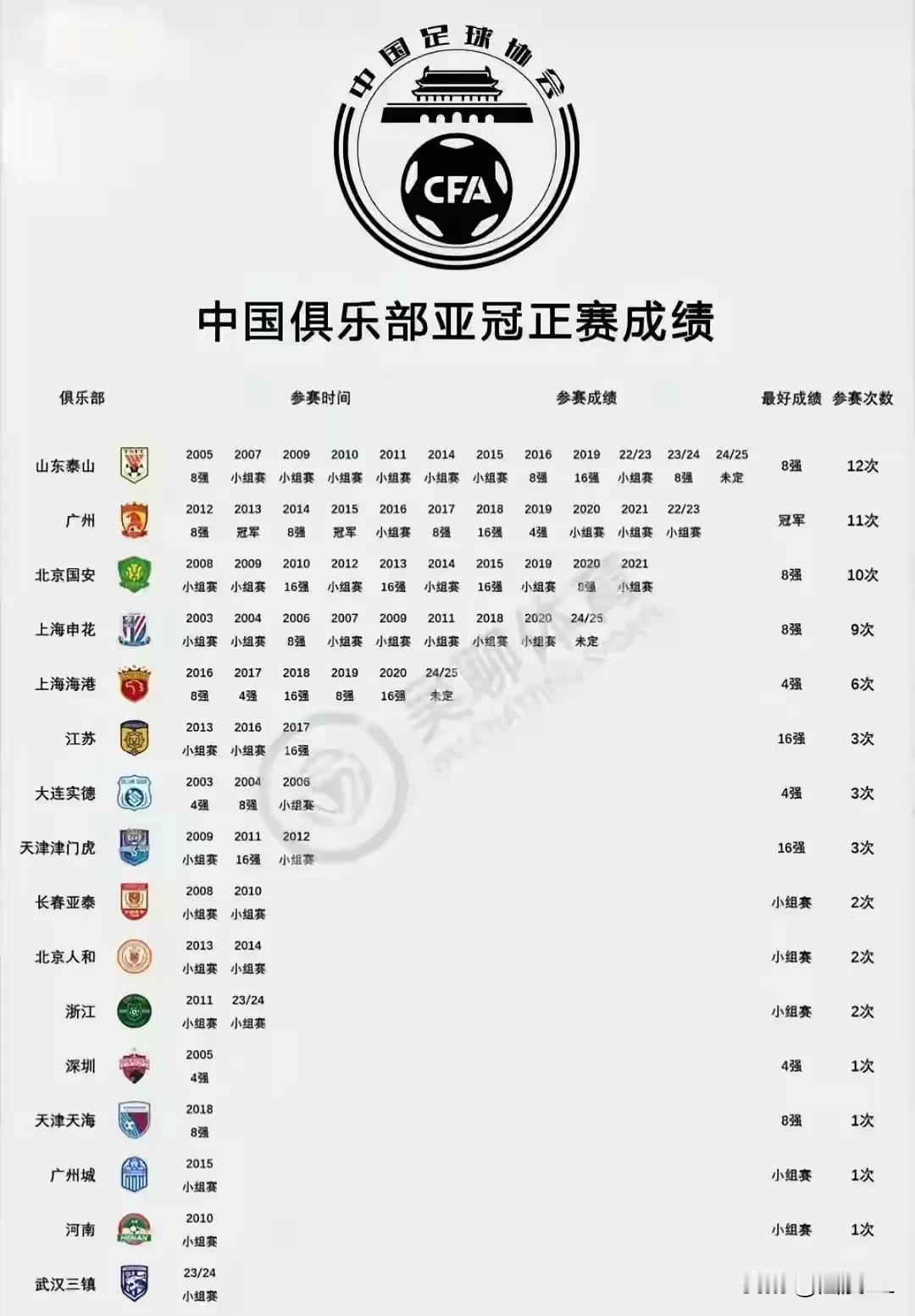 超越广州队,山东泰山再创一项新记录!泰山队淘汰曼谷联晋级24/25赛季亚冠精英赛正赛后,参赛次数达到12次,已超越广州队,成为中国参加次数最多的球队,没有之一,但成绩尚未迎来较大的突破,最好成绩依然停留在8强。