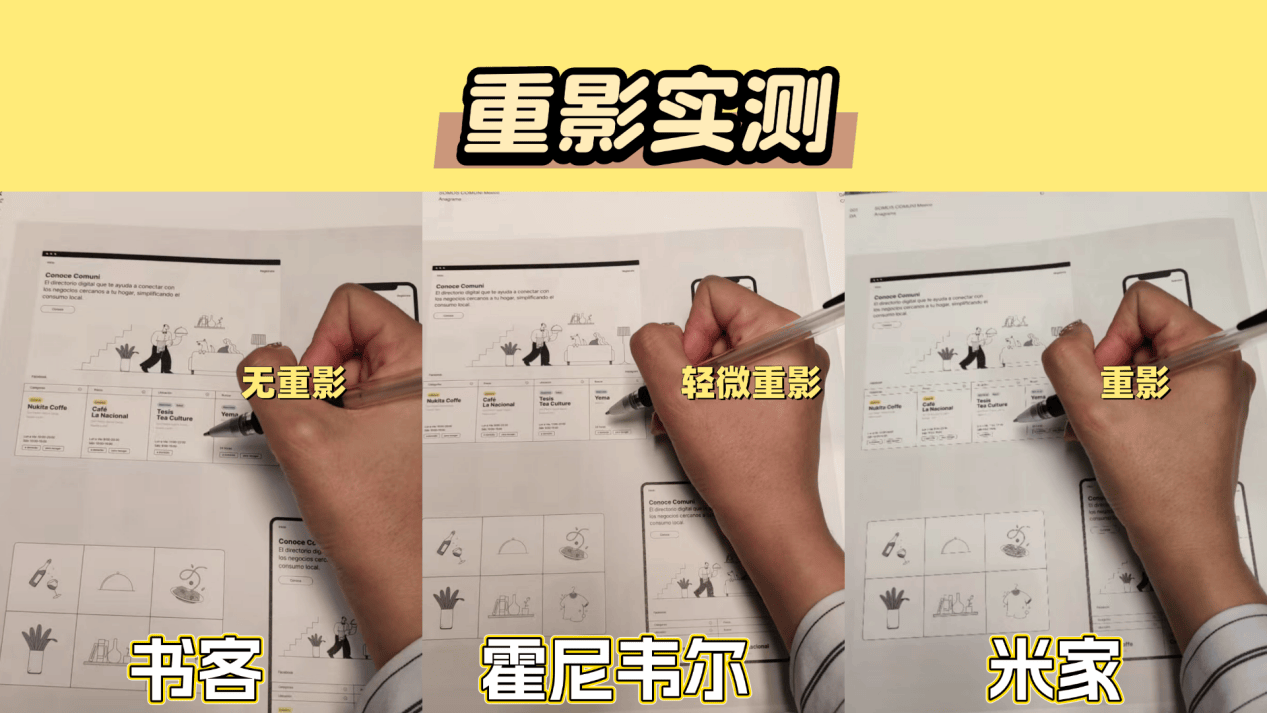 测评方法:模拟常规读写场景,观察笔部、手部是否存在重影现象。