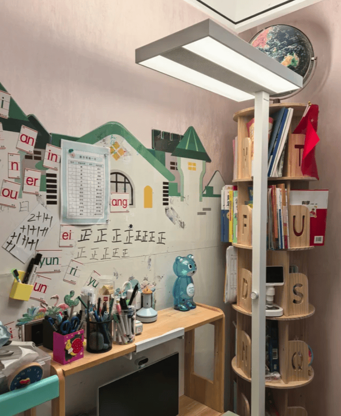 从实测来看,其中书客SUN2是唯一一款没有重影的护眼大路灯,这是因为书客SUN2护眼大路灯具备3:1合理的光通量比例,并且通过高密度导光板以及多重折射、反射,同时搭载SunShell360°立体光场,全面均衡光线,同时提高光线柔和度,有效的减少了重影,实际体验中并没有发现重影现象。