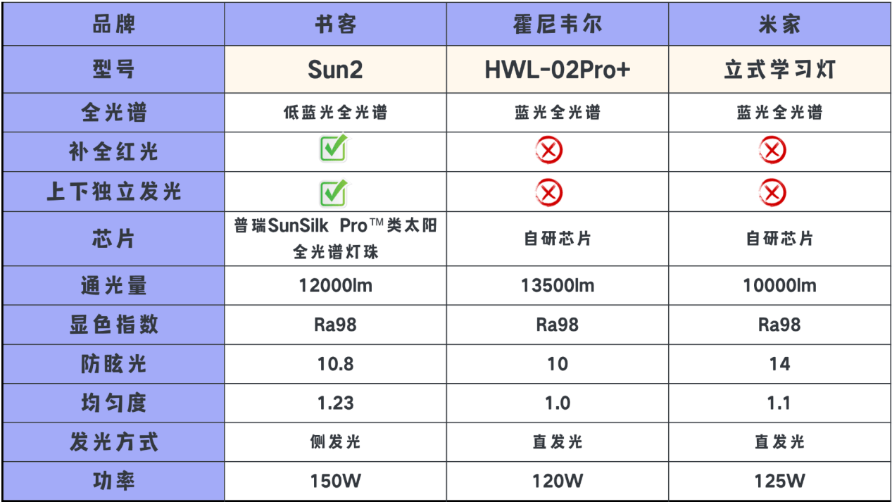 实测下来,其实每款护眼大路灯都有优缺点,但是从综合表现来看,我会比较推荐书客SUN2护眼大路灯,其无论是性能配置还是实际使用体验,都的完全不输高价位护眼灯,专业光学技术上毫不逊色,采用与美国普瑞Bridgelux联合定制的SunSilk Pro™类太阳全光谱灯珠,并结合RRT2.0红光养眼技术,有效减少98%的近视风险,护眼的同时更加养眼,而预算高的话霍尼韦尔HWL-02Pro+的表现不错,想要简单基础照明,米家立式学习灯也可以选择。