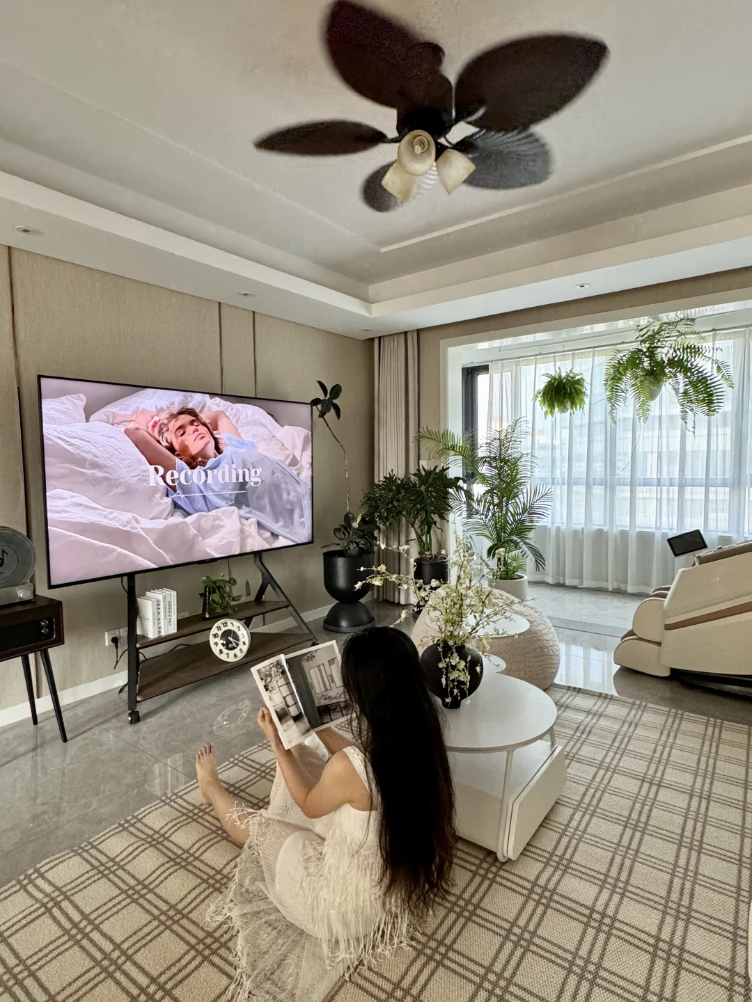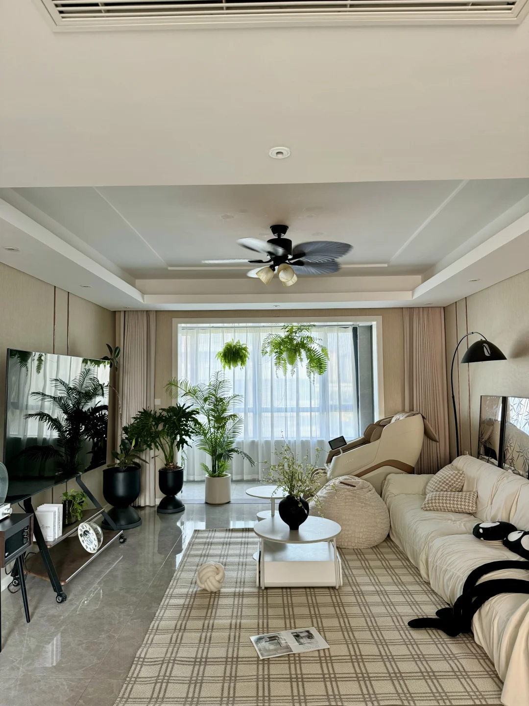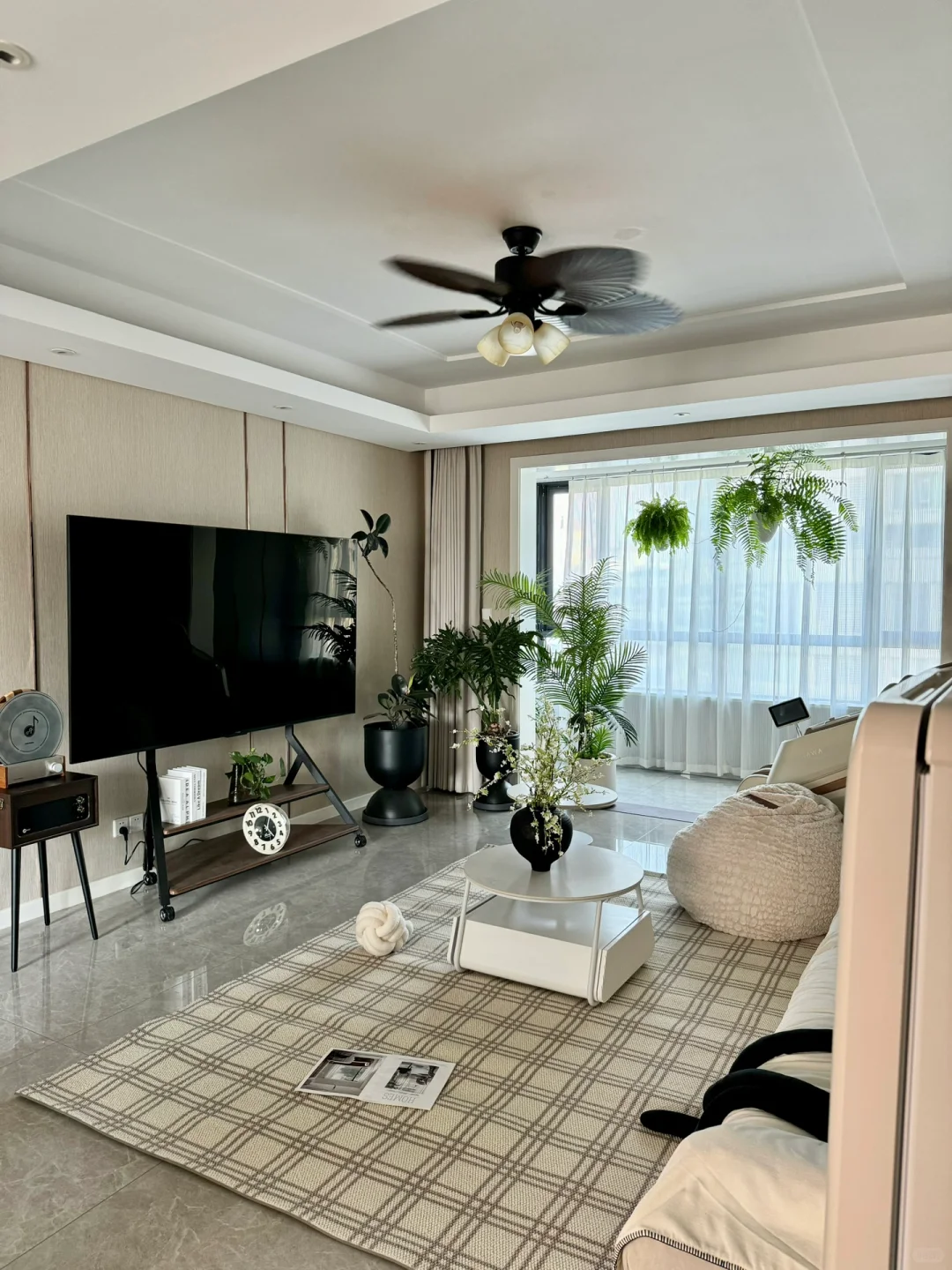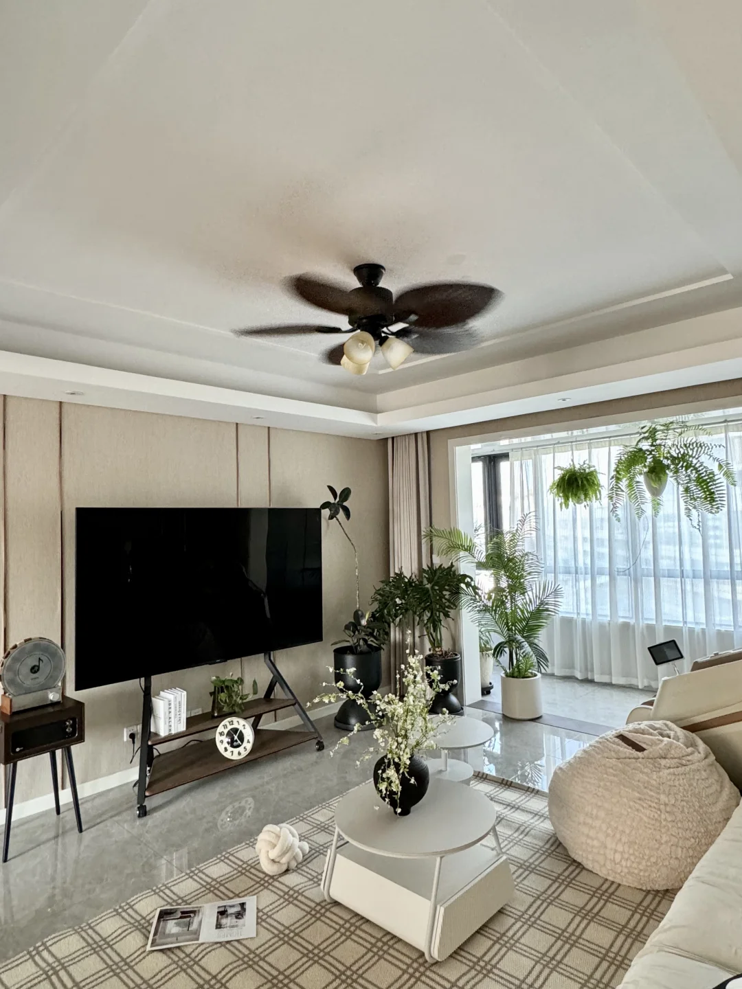 30+/单身/独居/167平 奶油风有点腻了,就想往中古风改改 大数据推了好多好好看的家给我 蕞心水的就是这个法式复古风扇灯 胡桃色的扇叶➕复古造型的灯 开起来是自然温柔的风,真的太舒服太喜欢了 时尚就是一个轮回 小时候悠悠转着的风扇 又装回了自己家里 夏日,有着童年回忆的微风 霸王蕨在风中轻轻摇曳,是我氛围感满满的家