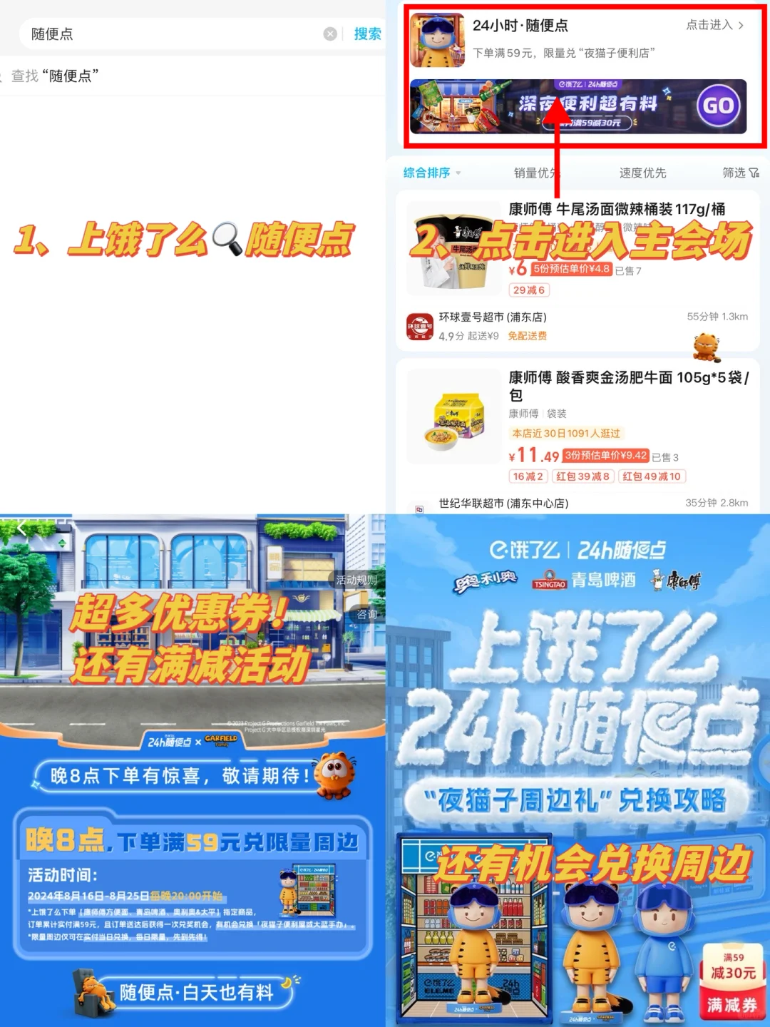 活动日期是16号-25号,大家直接在饿了么搜“随便点”就能看到活动!