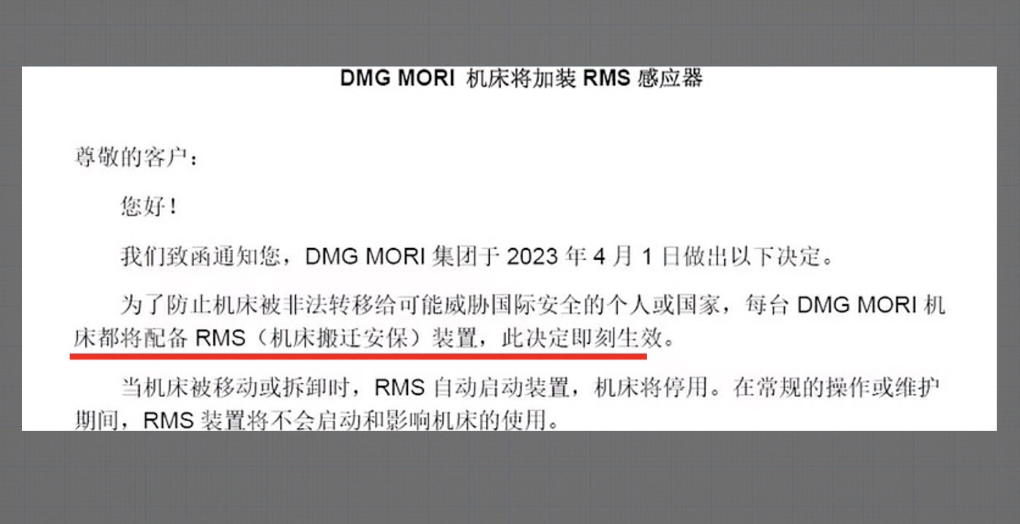 其实德马吉给所有出口到中国的机床安装RMS没多大必要,并非所有的机床都要这样警惕,德马吉这样的行为是一种滥用限制的做法。