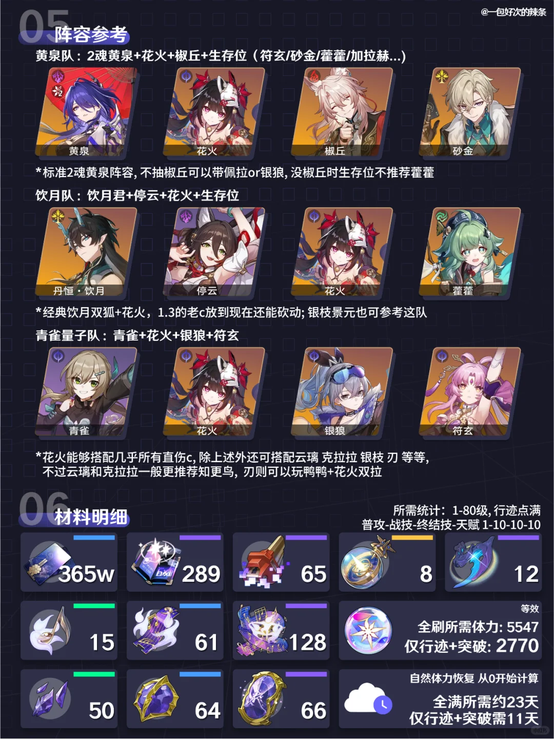 大家好,这里是一包好吃的辣条! 本期带来的是『花火』的培养指南 ————————————— 如有遗漏/错误欢迎指出,共同进步~ 最近新玩家/回坑玩家多,大家友善讨论哦~ —————————————