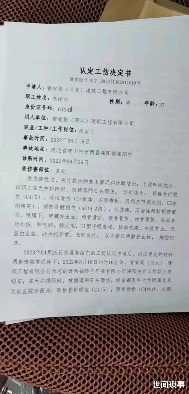 2022年8月18日,对于37岁的矿工高绍东而言,是改变一生的日子。这天,他在河北省迁西县滦阳铁矿天井排险作业时,被掉落的石头砸中,造成颈椎骨折脱位、颈部脊髓损伤、闭合性颅脑损伤重型等严重伤情,最终被鉴定为一级伤残,终身需要护理和专人照料。谁也没想到,这场发生在入职仅11天的工伤事故,竟让他陷入了漫长而艰难的维权之路,不仅赔偿遥遥无期,治疗更是屡屡因欠费受阻。