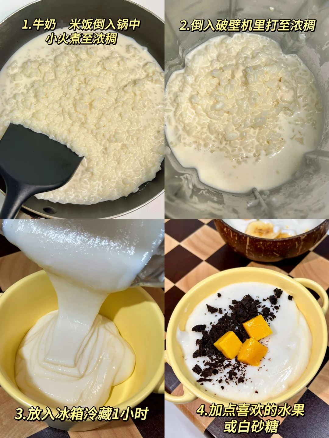 网友果然没骗我!剩米饭真的可以做出米布丁! 没想到这么简单!一次成功!!! 米香➕奶香!口感糯叽叽的!真的巨好吃 像奶香麻薯一样!还能拉丝!完爆甜品店啊!