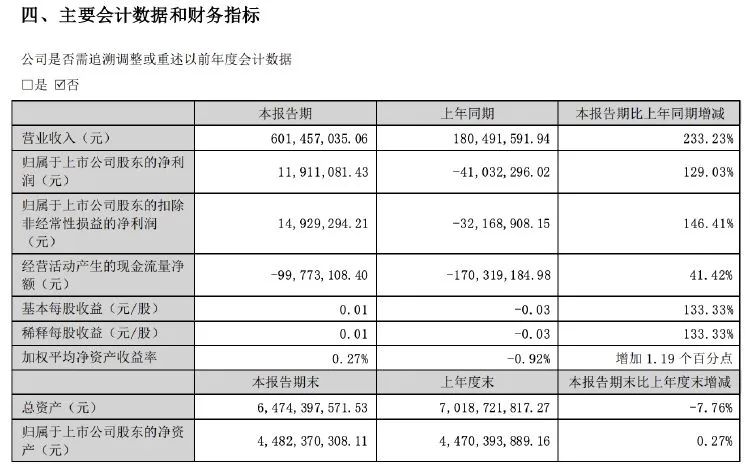 此外,同日晚间三湘印象还发布半年度业绩报告,2024年上半年公司营业收入约6.01亿元,同比增加233.23%;归属于上市公司股东的净利润约1191万元,同比增加129.03%;基本每股收益0.01元。公司净利润同比扭亏。