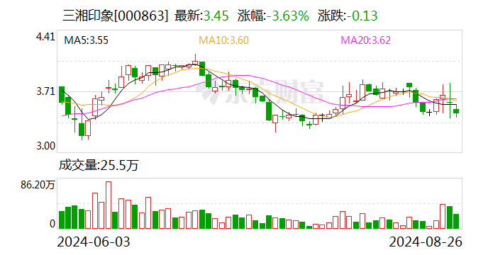截至26日收盘,三湘印象跌3.63%,报3.45元/股,总市值40.73亿元。