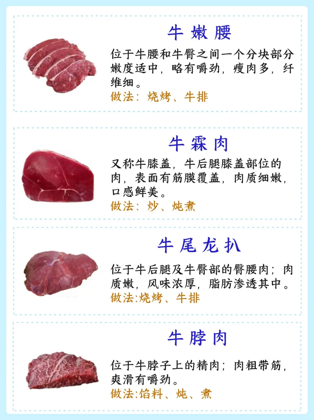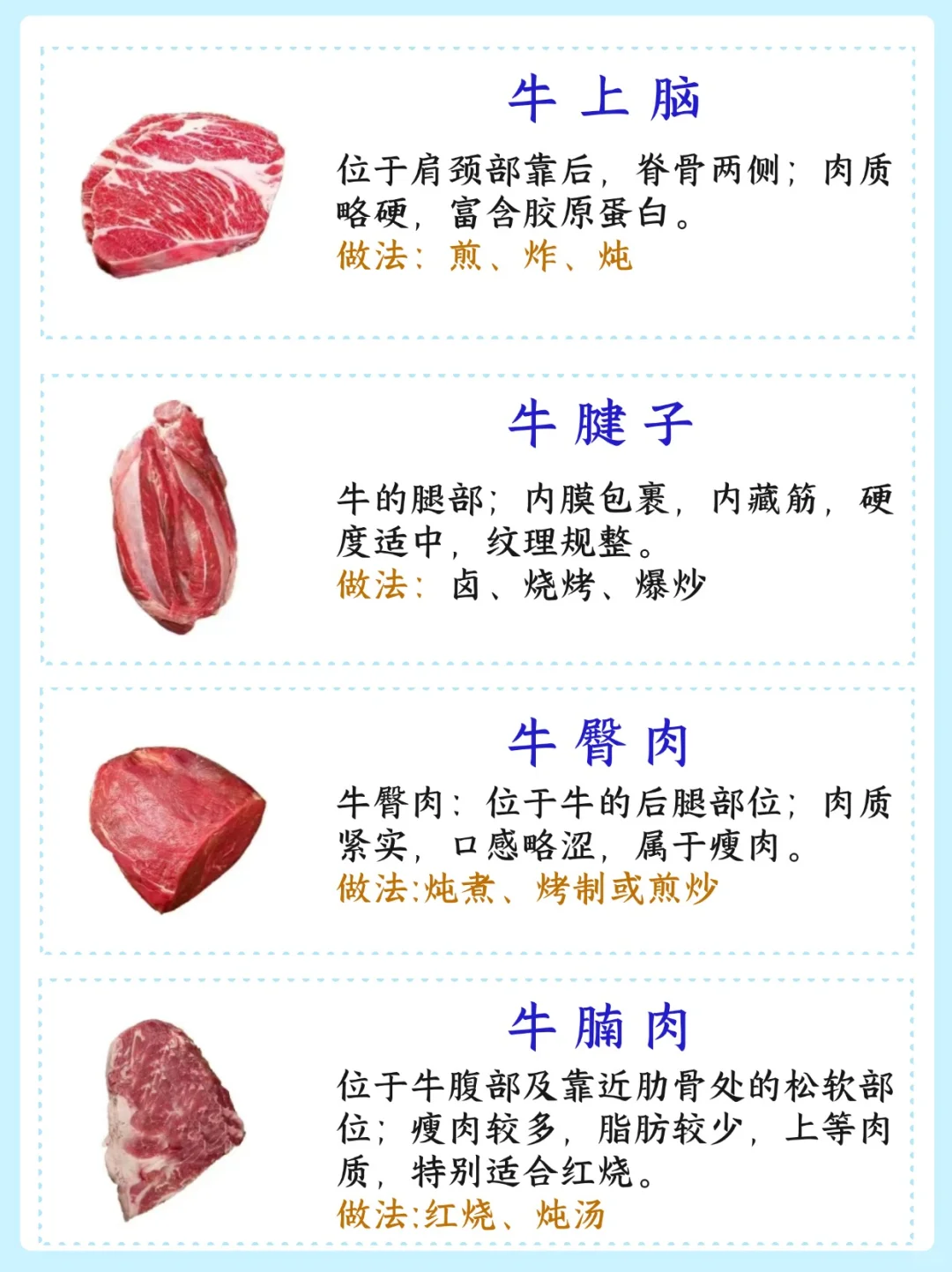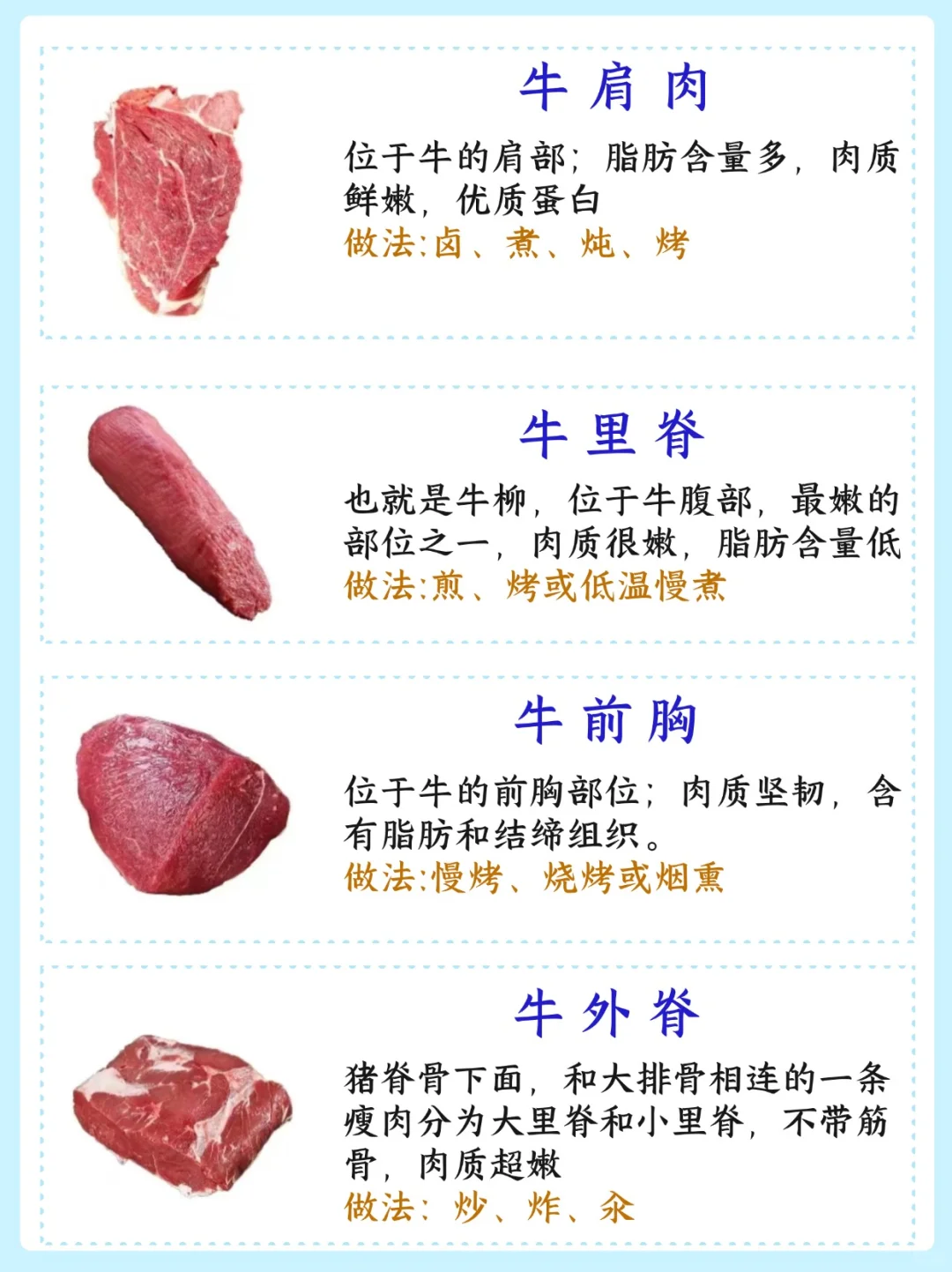 比如里脊肉适合快速烹饪如炒或煎,而牛腩则适合慢炖