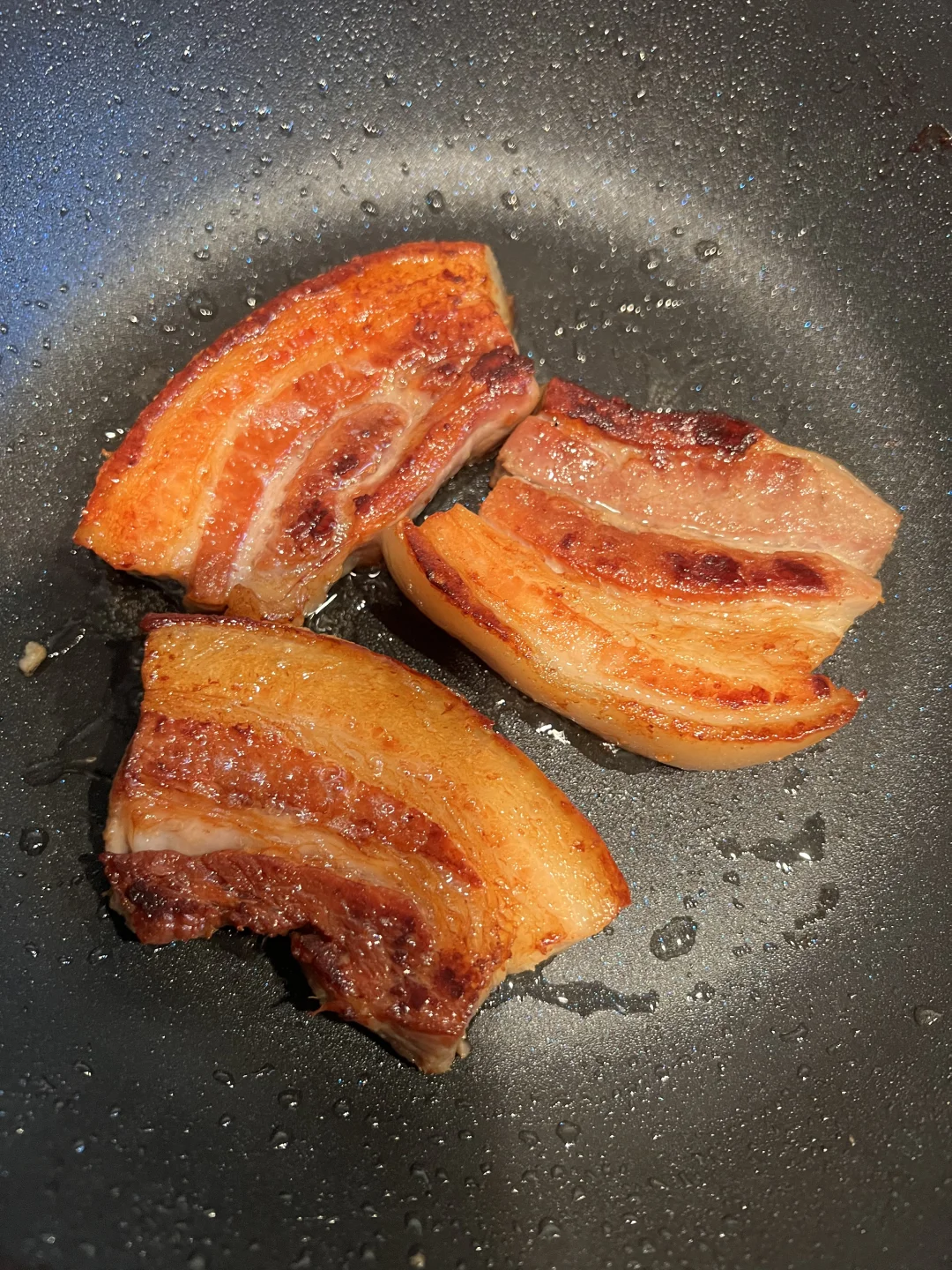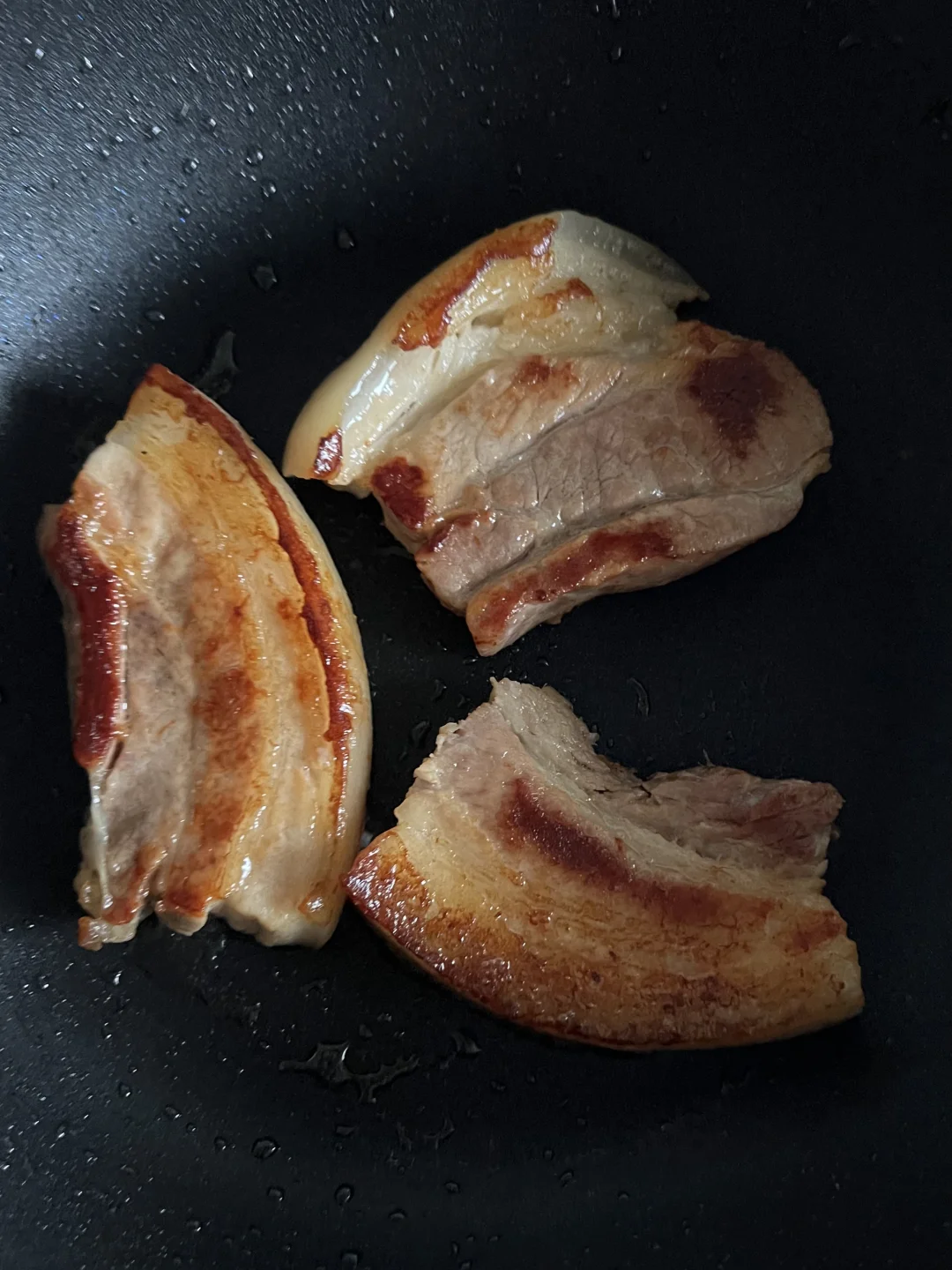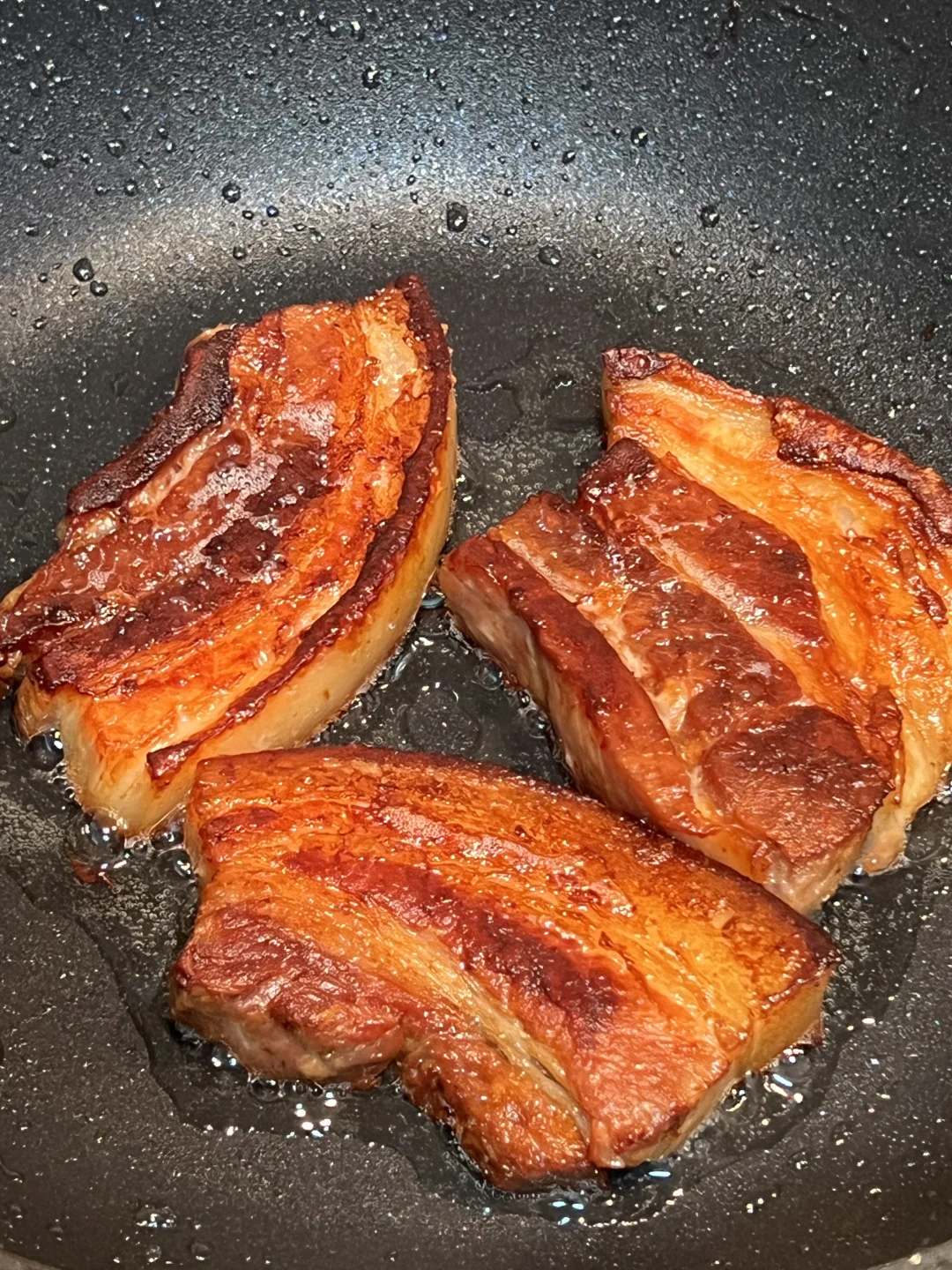 4️⃣煎至两面焦黄即可出锅,切片(用力剁比较好,我是切的,把肉切烂了,因为外皮是脆的)