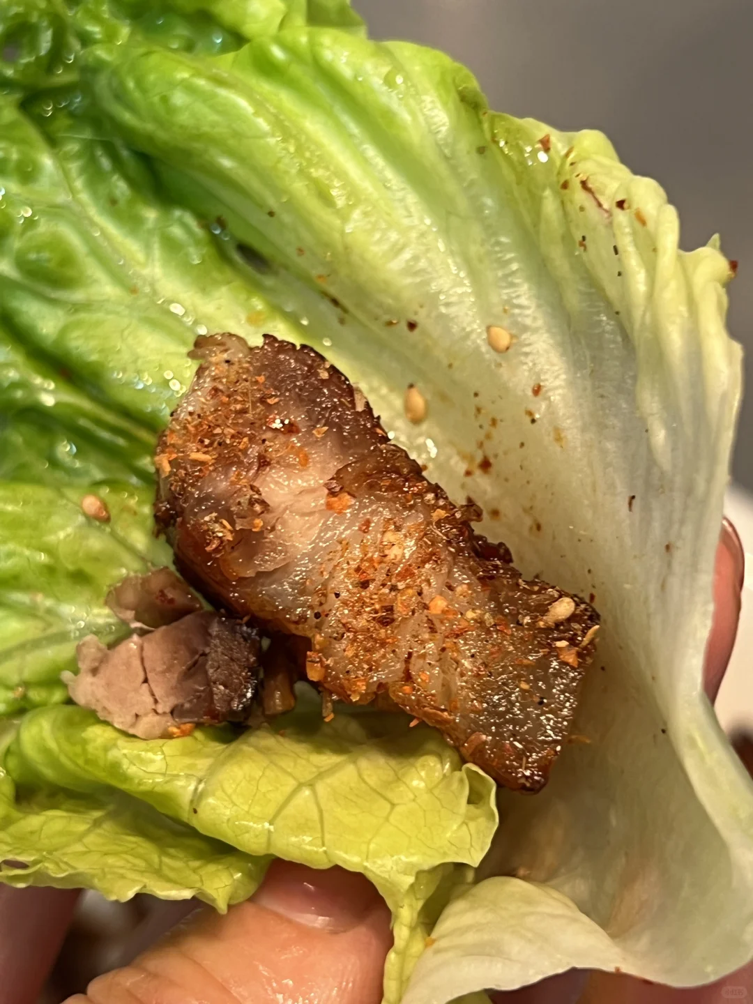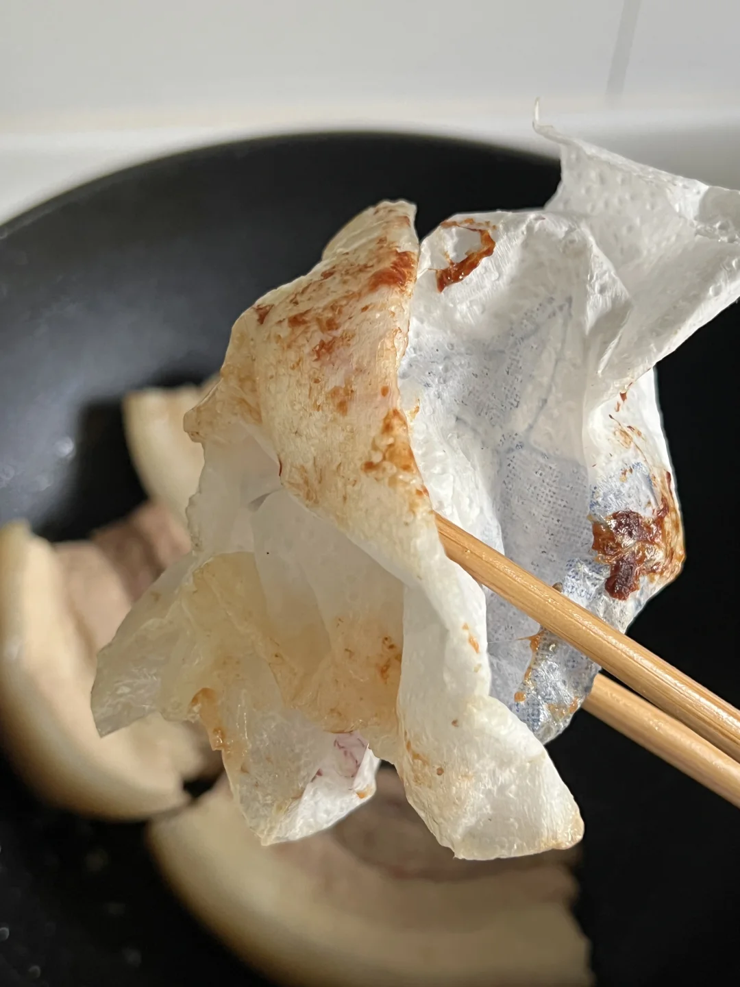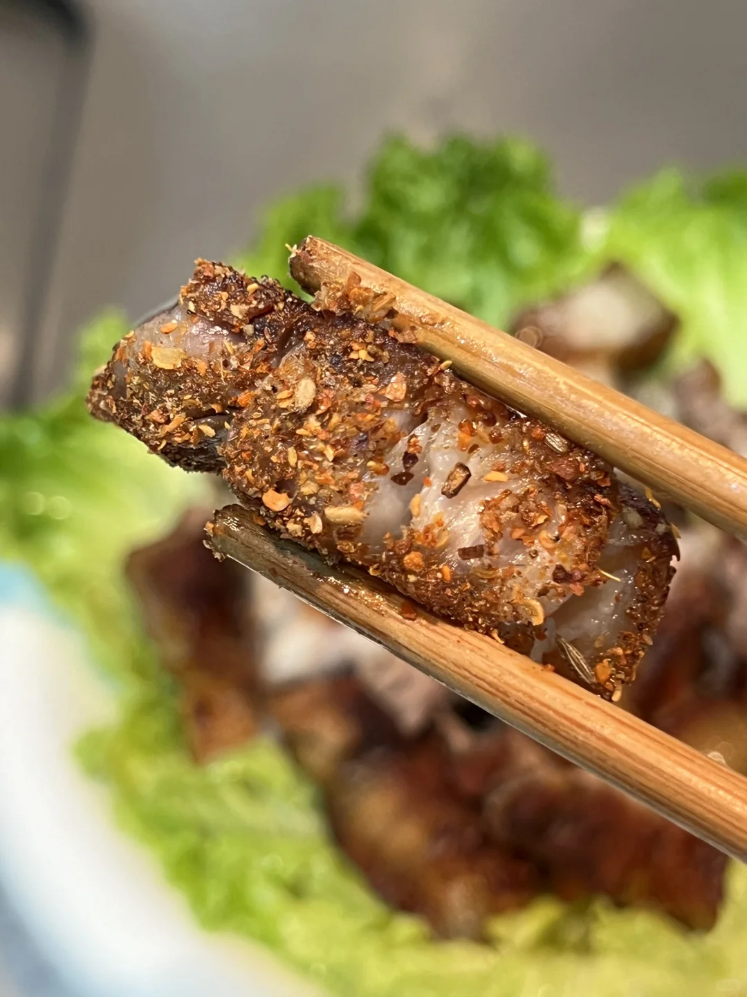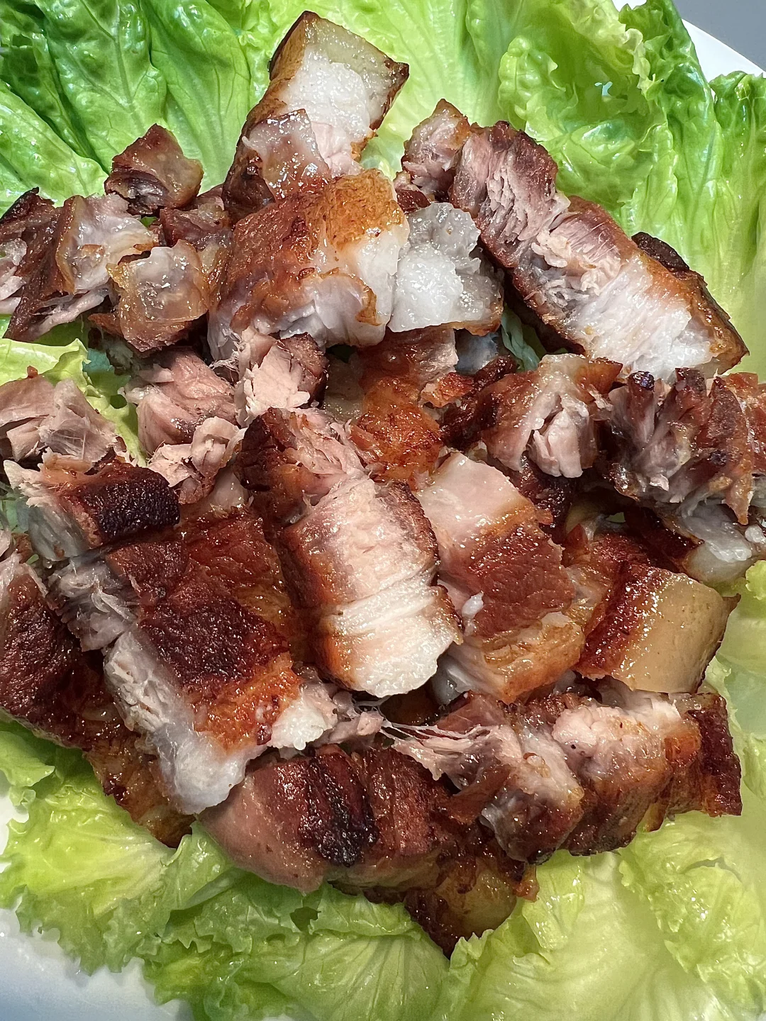 4️⃣煎至两面焦黄即可出锅,切片(用力剁比较好,我是切的,把肉切烂了,因为外皮是脆的)