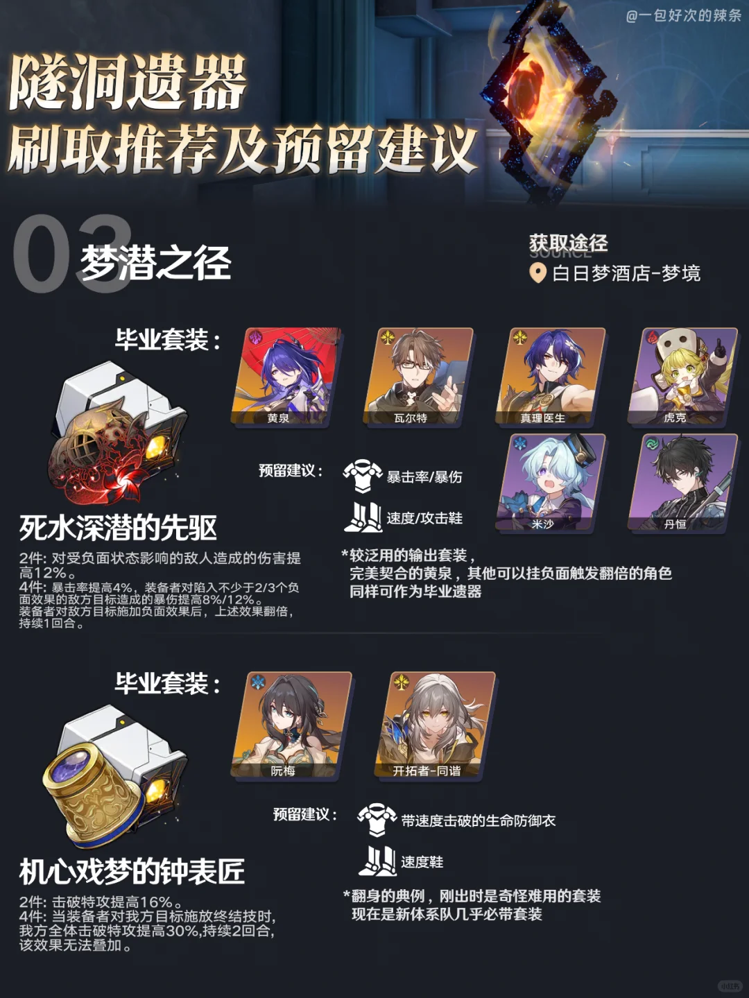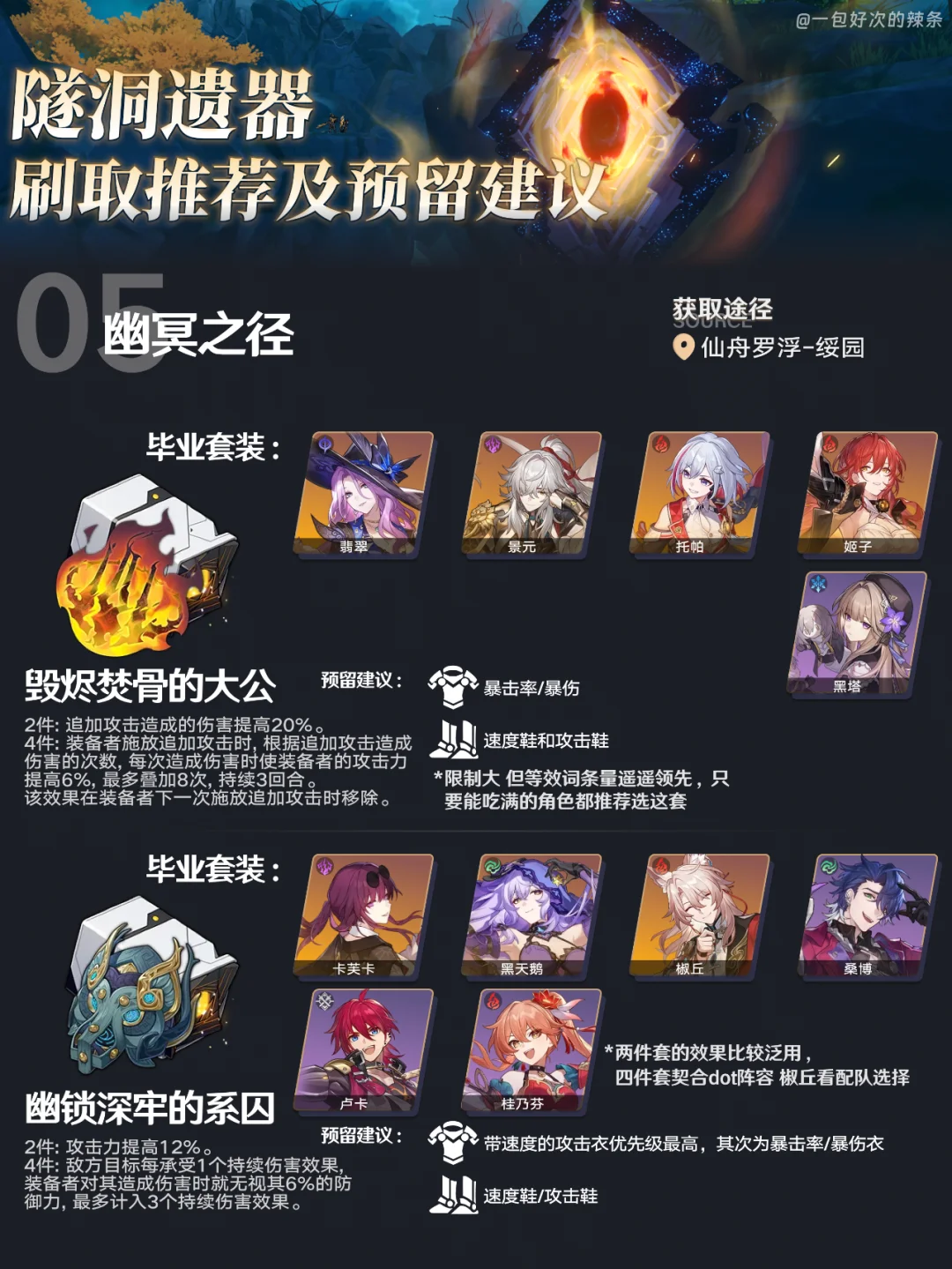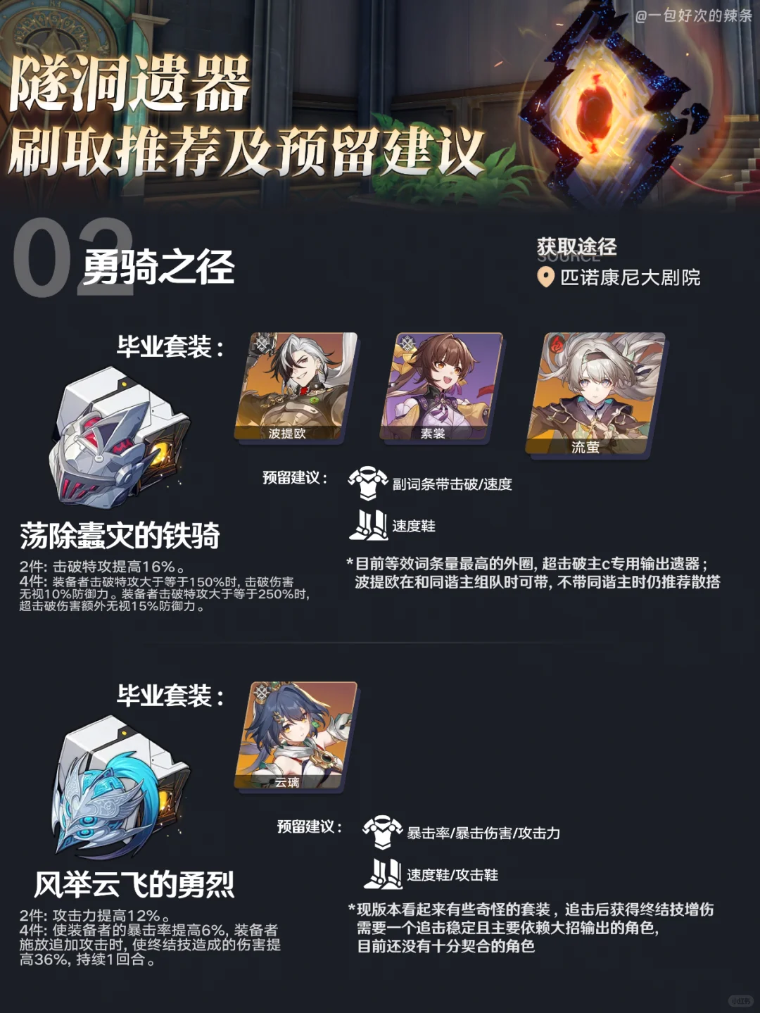 可恶啊,2.4竟然是一个连双倍遗器都没有的版本 不过辣条还是给大伙更新刷取指南 再也不用纠结刷什么啦~ ————————————— 如有遗漏/错误欢迎指出,共同进步~ —————————————