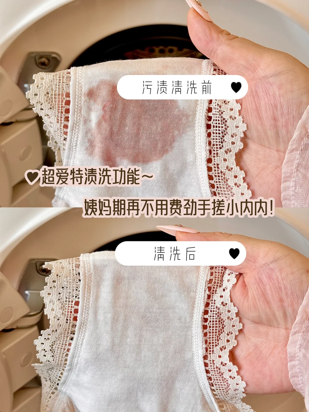 它还有一个我超爱的特渍洗功能,姨妈期的内裤也不用费劲手搓了!!是谁每次姨妈洗不干净就得毁掉一条心爱内裤的,我不说!!这功能我真的爱亖!