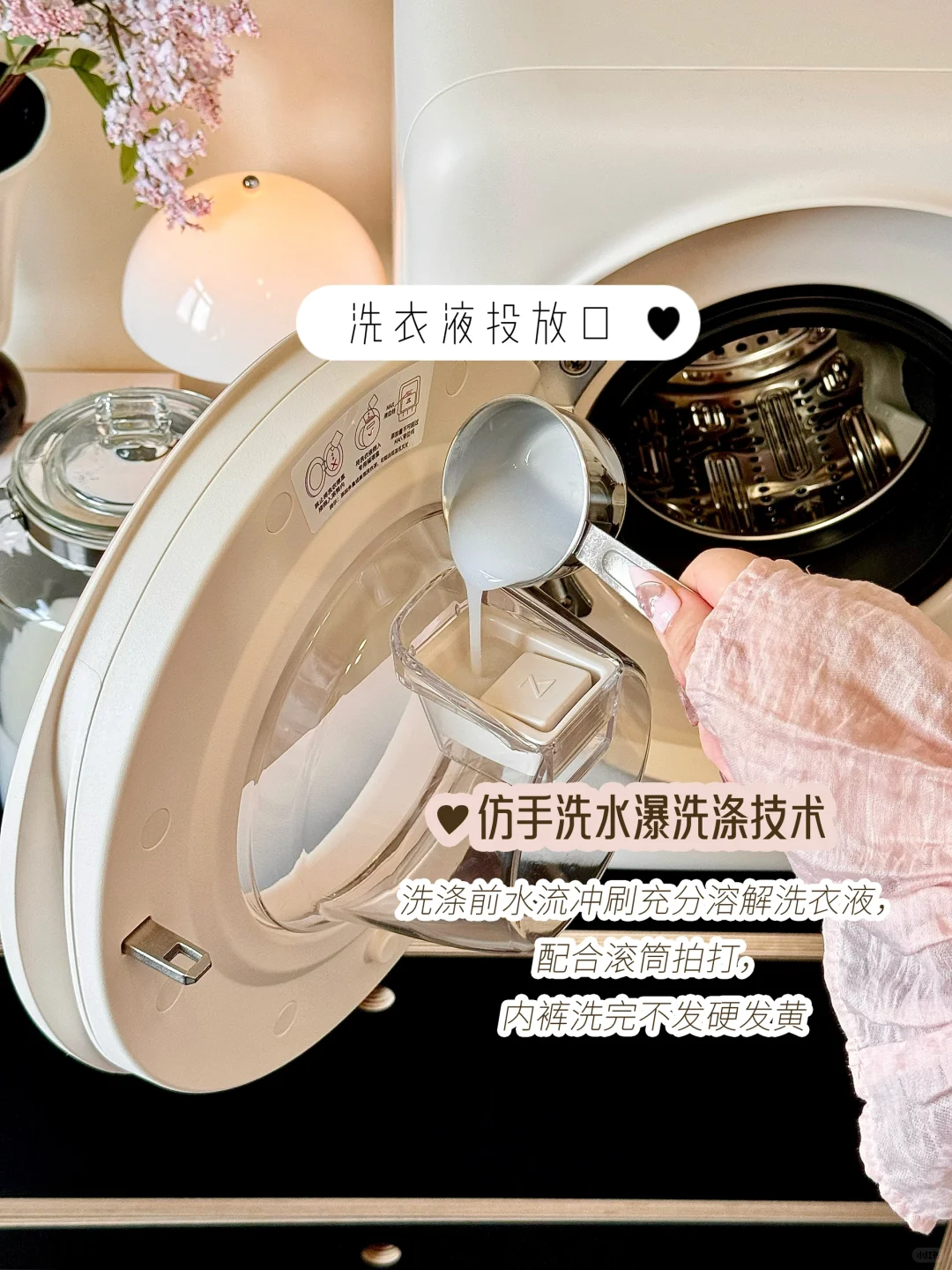 仿手洗水瀑洗涤技术,洗涤前水流冲刷充分溶解洗衣液,接着再配合滚筒拍打,比手洗可干净太多太多了,内裤不会有洗衣液残留导致发黄发硬!