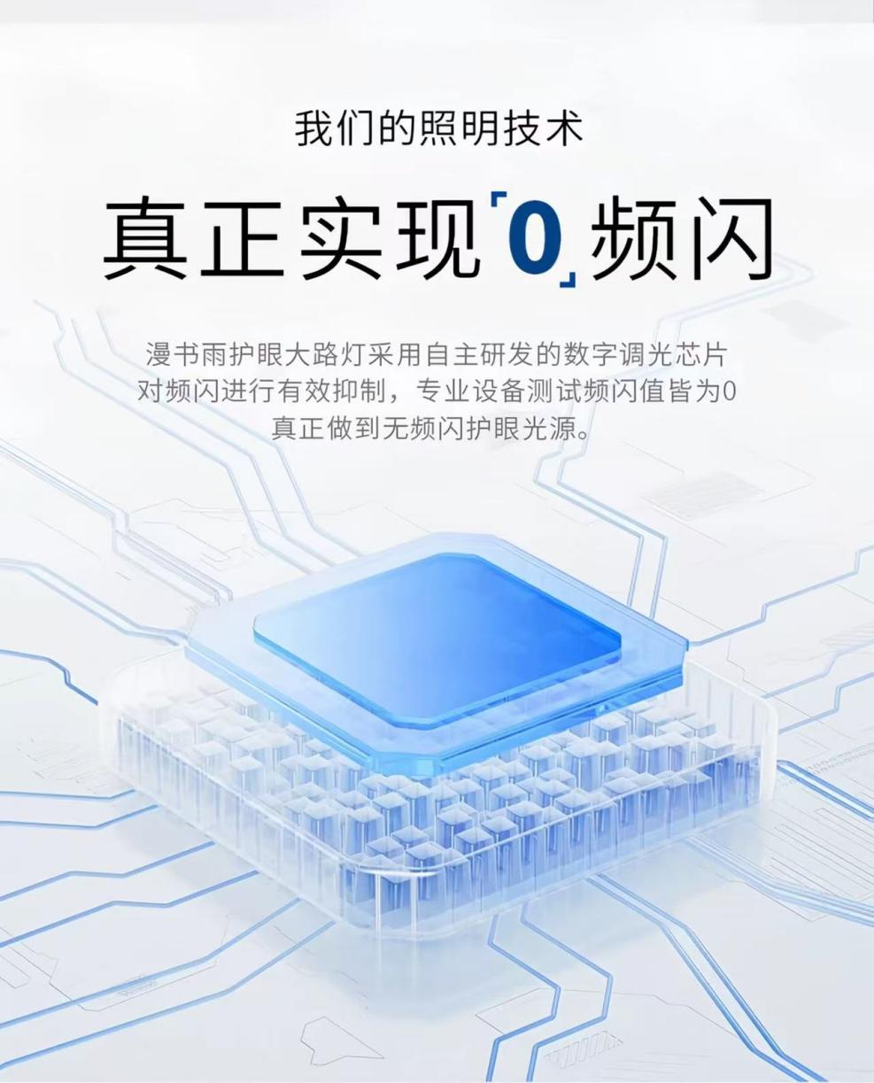 漫书雨星光Pro还有个超厉害的亮点,它是当下市场上少有的能做到“0频闪”的产品。传统大路灯靠PWM调光方式,提高光输出频率让人眼察觉不到闪烁,可漫书雨星光Pro直接利用新一代数字调光芯片,把频闪直接降到了0,这用眼体验直接“起飞”,安全系数也噌噌往上涨!