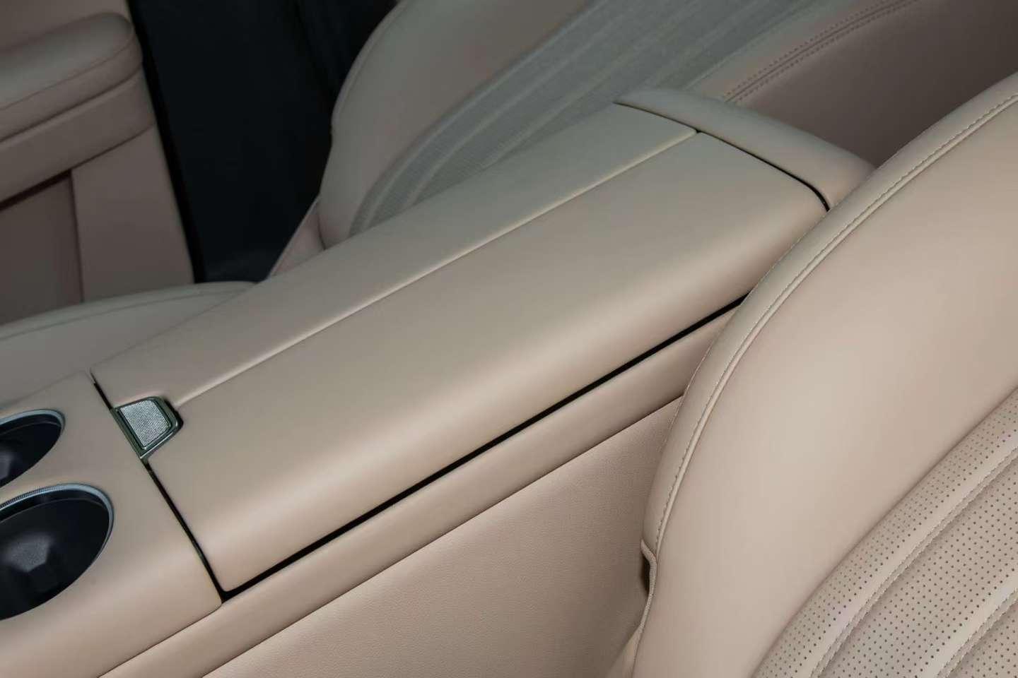 车内采用2-3-2实用座椅布局,“云朵舒享座椅”是理想同源座椅品牌,12层发泡结构软乎乎的,支撑性良好,全车座椅均支持电动调节,主驾12向电动调节,前排座椅带记忆、加热、通风、10点按摩功能,长途驾驶时开启按摩,能有效缓解腰部疲劳;二排座椅能加热,还带小桌板,承重力30kg,孩子坐车写作业、放零食都稳,旅游在外办公也超方便。更贴心的是,前排中央扶手下方隐藏着车载小冰箱,支持-6~6,35~50℃温度可调,冬天放热饮、夏天冰饮料,露营时随时能喝到的可口饮品;还配备了50W无线快充面板,手机放上去就能快速补能,配合全车5个USB接口,彻底解决了全家出行的“电量焦虑”。