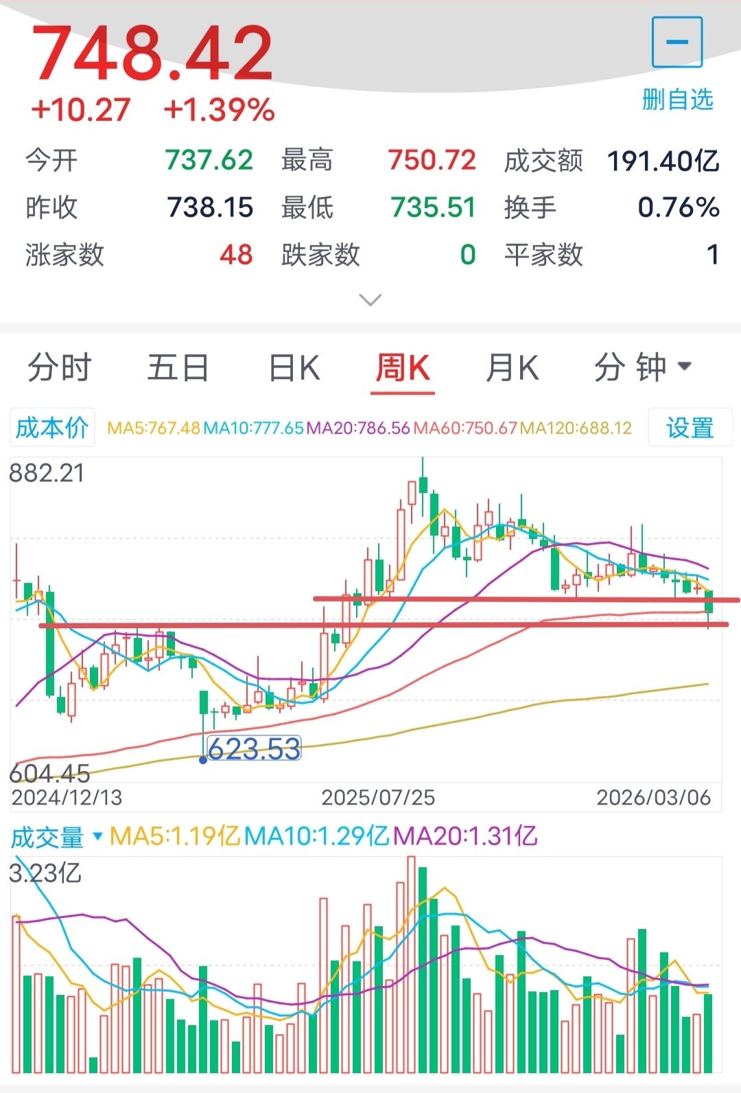 月线级别看,主要看740点,站稳了就问题不大。