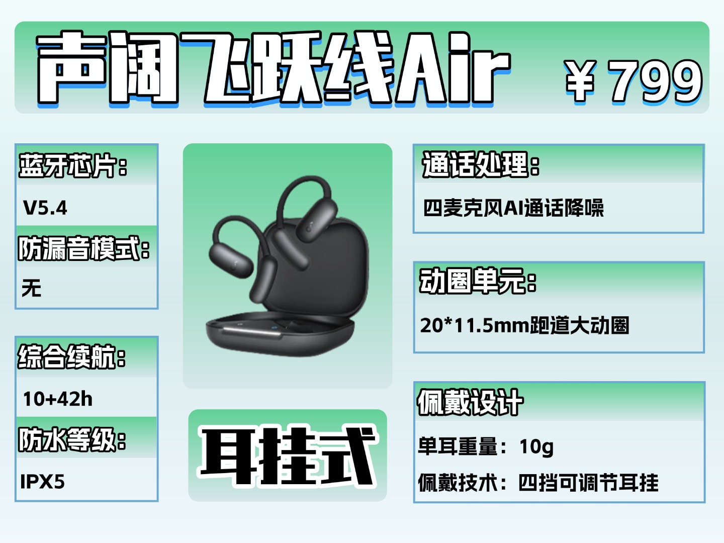 哪些场景适合佩戴开放式耳机开放式耳机不堵耳朵、能听清周围动静,特别适合需要兼顾听歌和外界情况的场景:通勤走路、挤公交地铁时,听歌的同时不耽误听站点和路况;运动健身时,不闷耳还能留意身边动静、听清教练指导,不用反复摘戴;办公学习时,久戴不难受,同事喊你、电话响了都能听见