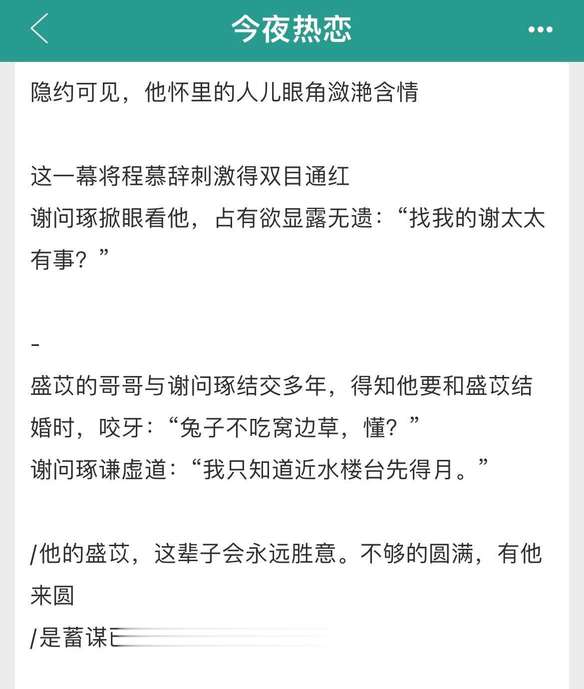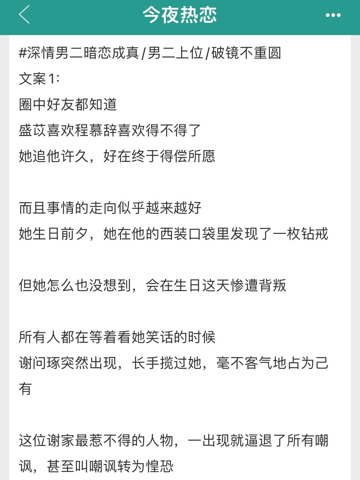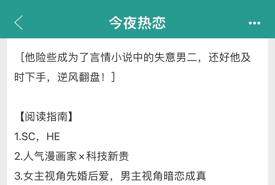 男二上位+破镜不重圆!男二上位+破镜不重圆! 女主视角先婚后爱,男主视角暗恋成真 书名:《今夜热恋》 作者:芒厘 标签:现言、先婚后爱、暗恋成真