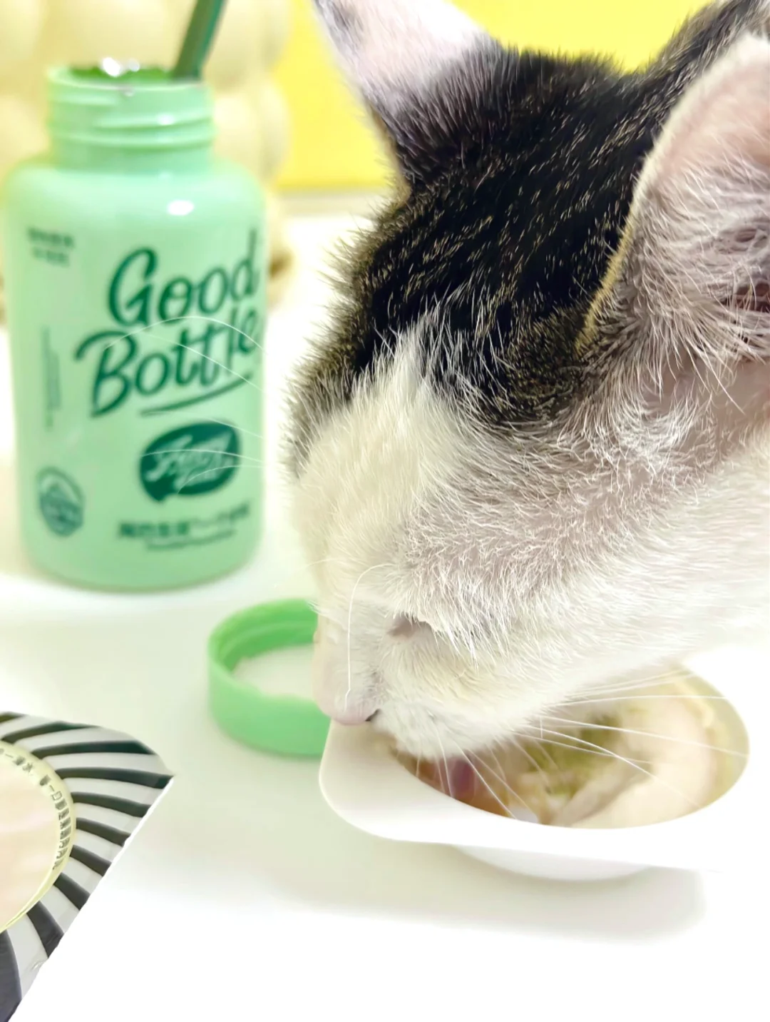 这小绿瓶 爱死了 掉毛季了 总是猫毛满天飞 主要是它还巨爱舔毛 贼爱干净 毛球困扰也就跟着来了 逆子不爱吃猫草 看到尾巴生活小绿瓶 又是草本 很温和 配方里还加了羊奶粉闻着还有股淡淡的奶香 日常伴猫粮 罐头都可以 连续吃了几天真的有效果