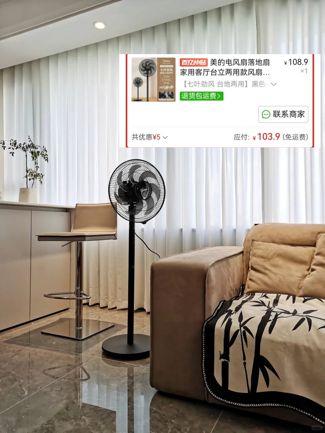 我买的这款美的落地扇到手才一百零几块,平台补贴了大几十,省下来的钱够买一盒雪糕的了。