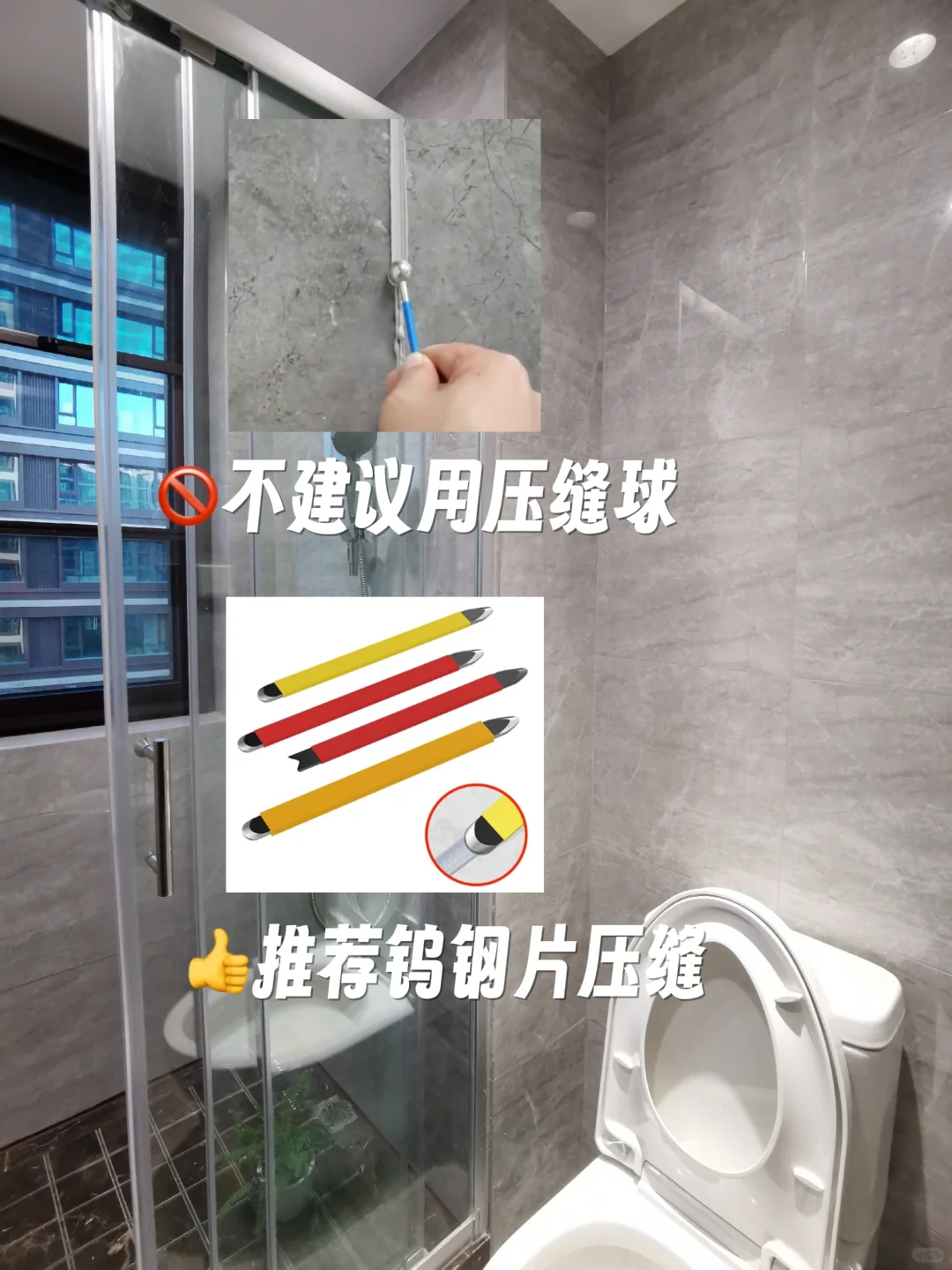 3⃣️、美缝工具也很重要:美缝不平整的话,会很难看。特别是像我这种打算自己施工的,一定要选好容易施工的压缝工具。(这边建议用钨钢片压,不要用压缝球,我刚开始用的就是压缝球,做出来的缝隙不平整,而且和踢脚线交接处容易粘连)