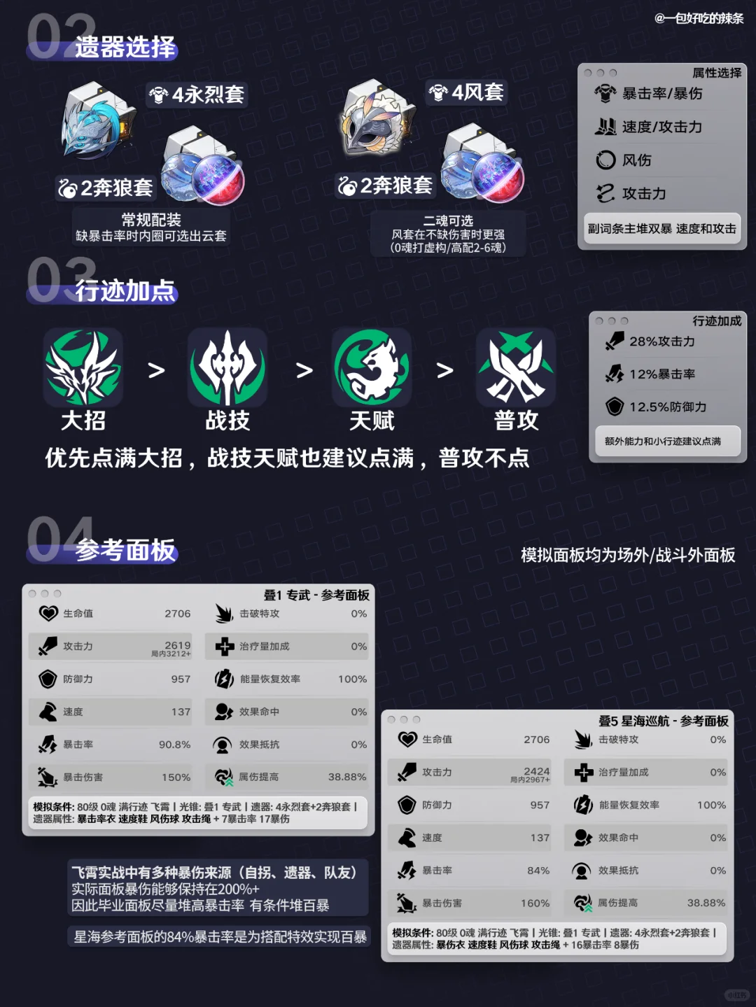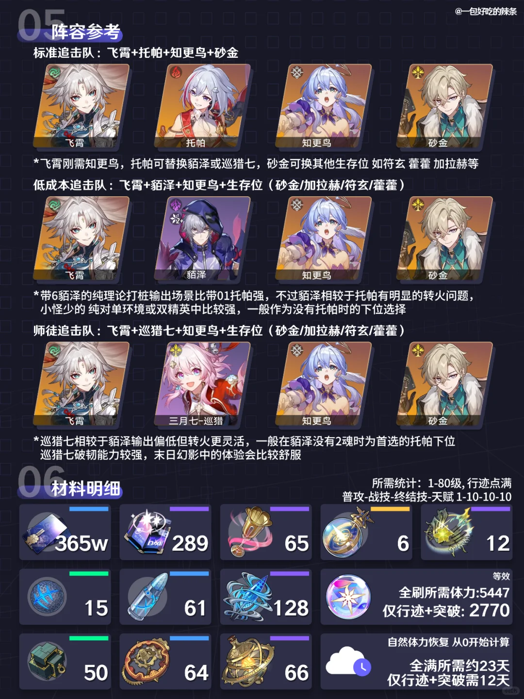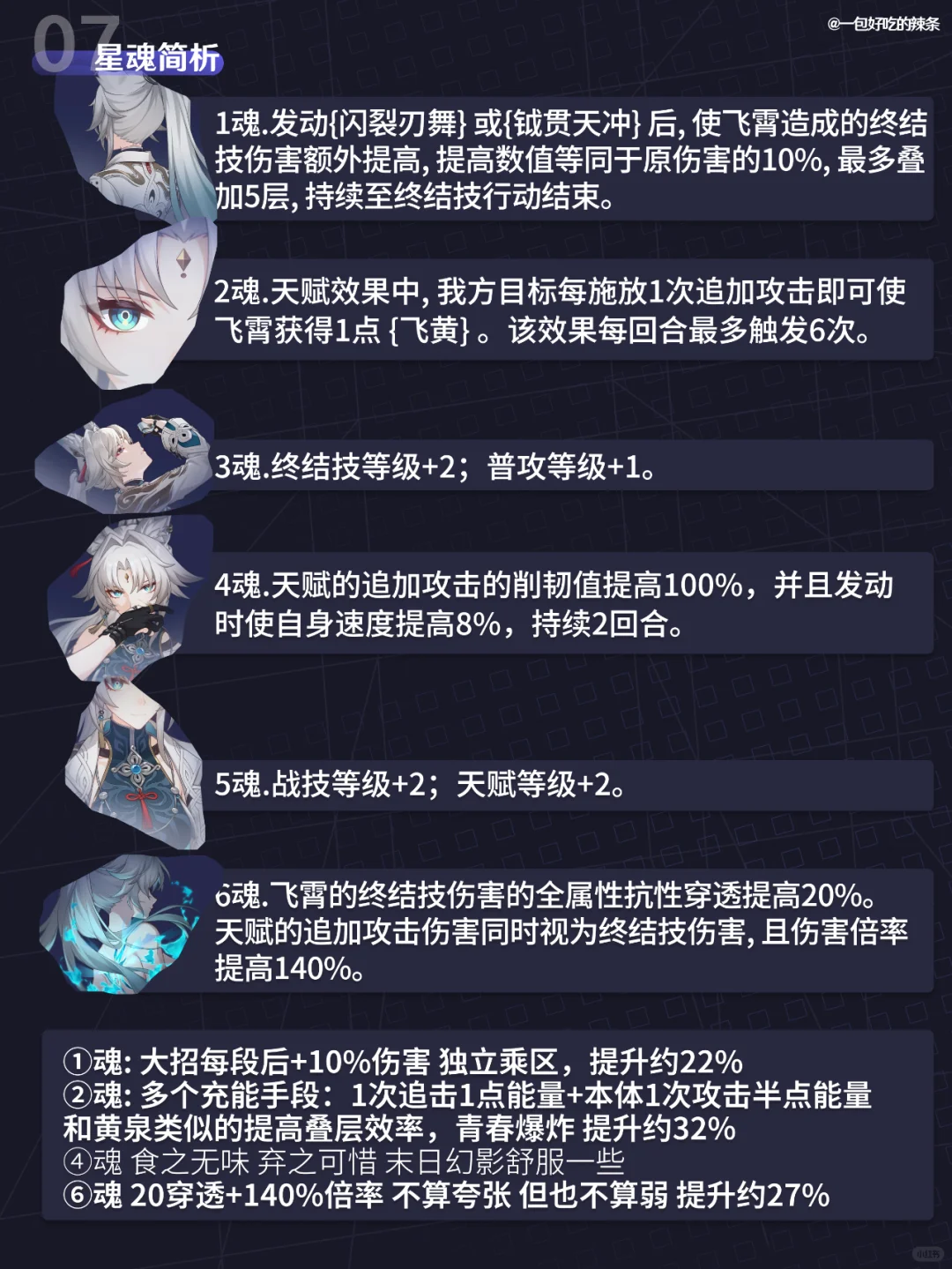 大家好,这里是一包好吃的辣条! 本期带来的是『飞霄』的培养指南 ————————————— 如有遗漏/错误欢迎指出,共同进步~ 最近新玩家/回坑玩家多,大家友善讨论哦~ —————————————