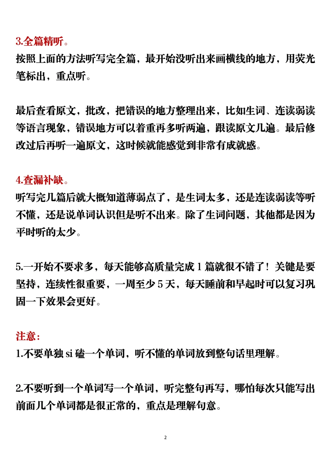 2.不要听到一个单词写一个单词,听完整句再写,哪怕每次只能写出前面几个单词都是很正常的,重点是理解句意。