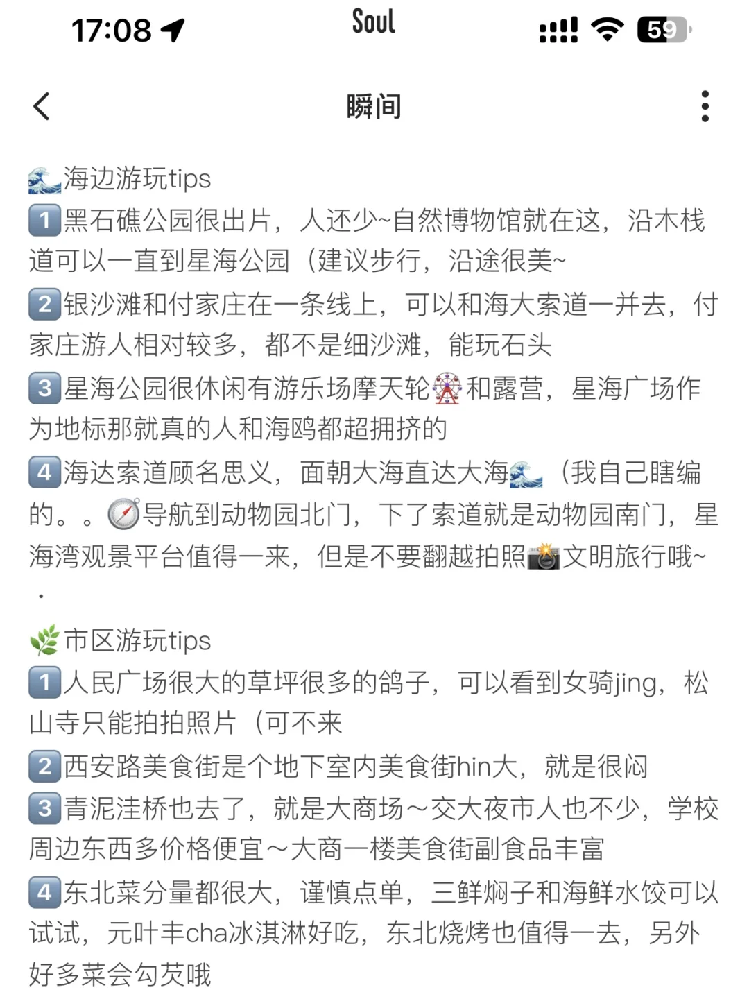 本打工人最近特想出去放松一下,跟朋友约了周末去大连自驾游,就说懒人有“懒福”吧[偷笑R] 就在soul广场里那么一搜,[哇R]超详细的攻略就出来了!不要太全面了! 吃喝玩乐一天全包,也很适合第1次去大连的姐妹哦 ⚠️暑假穿搭:记得把漂亮的裙子👗带上,海边穿真的很出片~