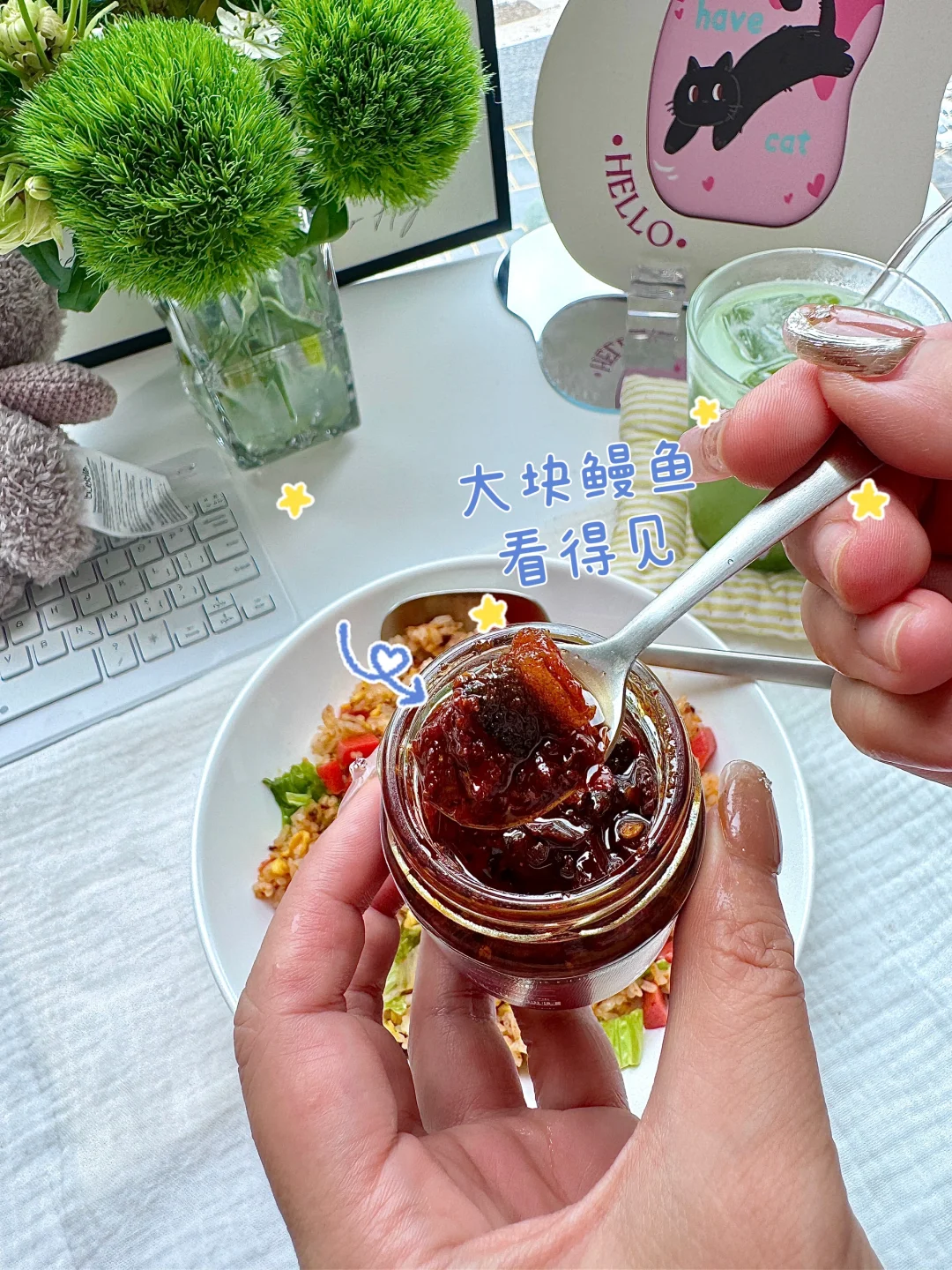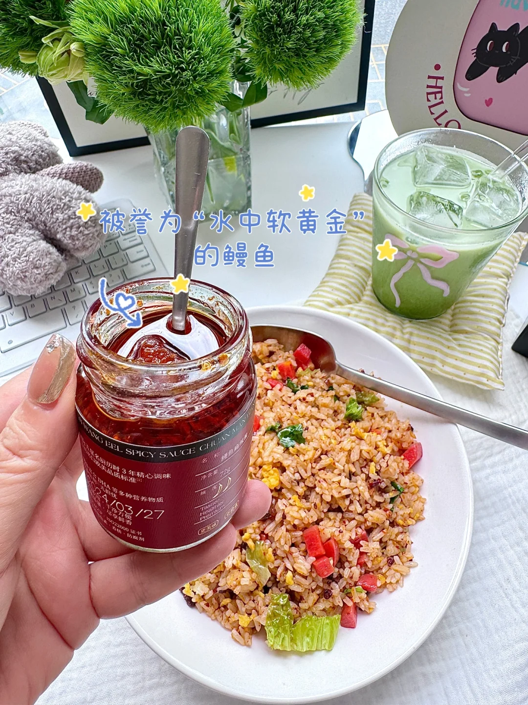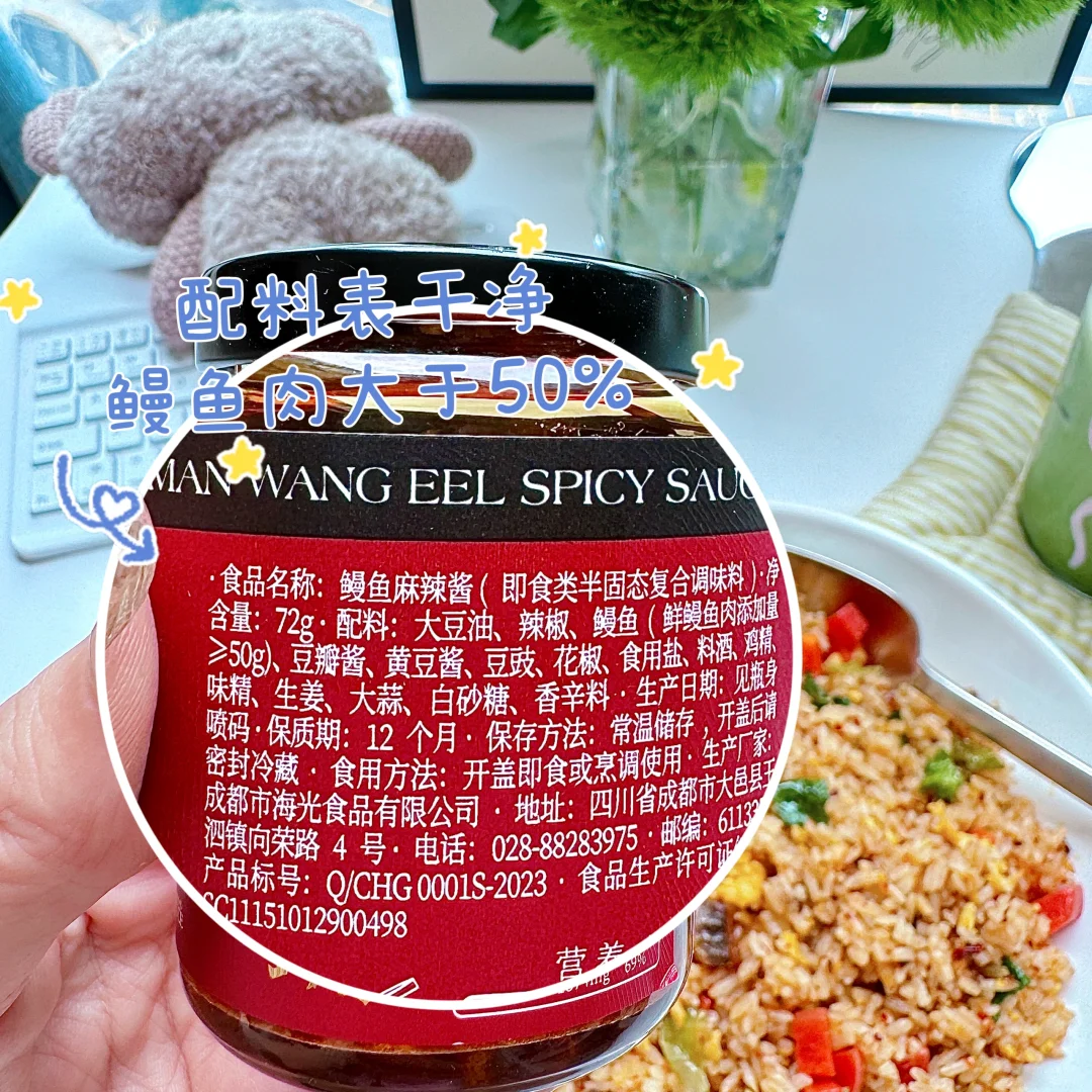 又又回购了川鳗王鳗鱼酱,这次换个新吃法,炒饭 食材就5样,做法简单,咔咔香~ 鳗鱼香辣酱、米饭、鸡蛋、胡萝卜、生菜 平底锅少油,放入鸡蛋炒香,加入米饭和胡萝卜🥕 灵魂拌饭酱~川鳗王鳗鱼香辣酱,最后加入生菜即可 简直是饭扫光,香喷喷 川鳗王鳗鱼香辣酱,有大颗粒鳗鱼肉,75g就有50g鲜活鳗鱼肉,富含DHA、EPA、维生素等多种营养元素,0色素0香精0防腐剂,吃起来放心。冰箱常备的下饭酱,精致小瓶装避免久放变味和细菌滋生,专用小勺干净方便,喜欢拌饭炒饭的姐妹可以安排上了