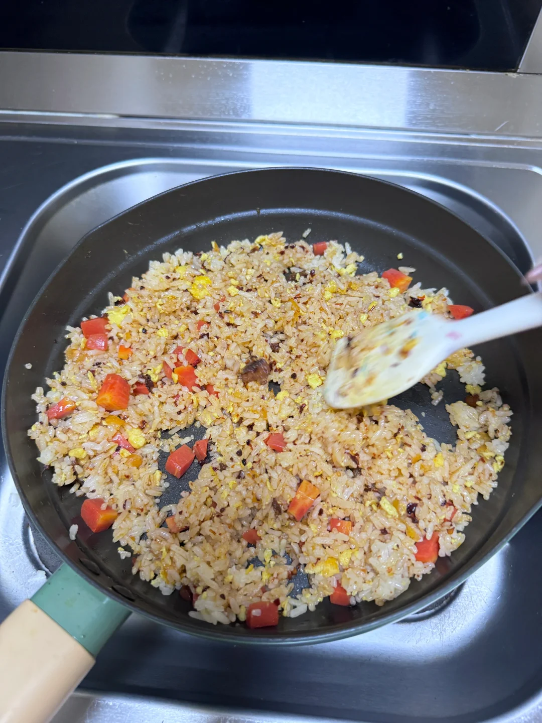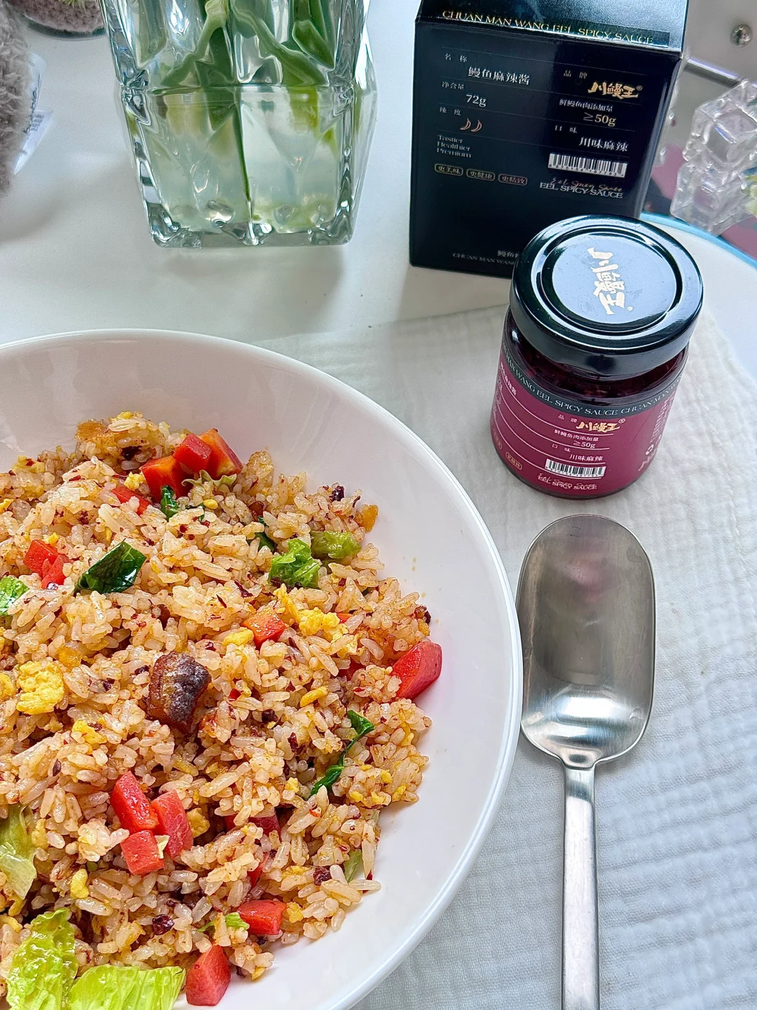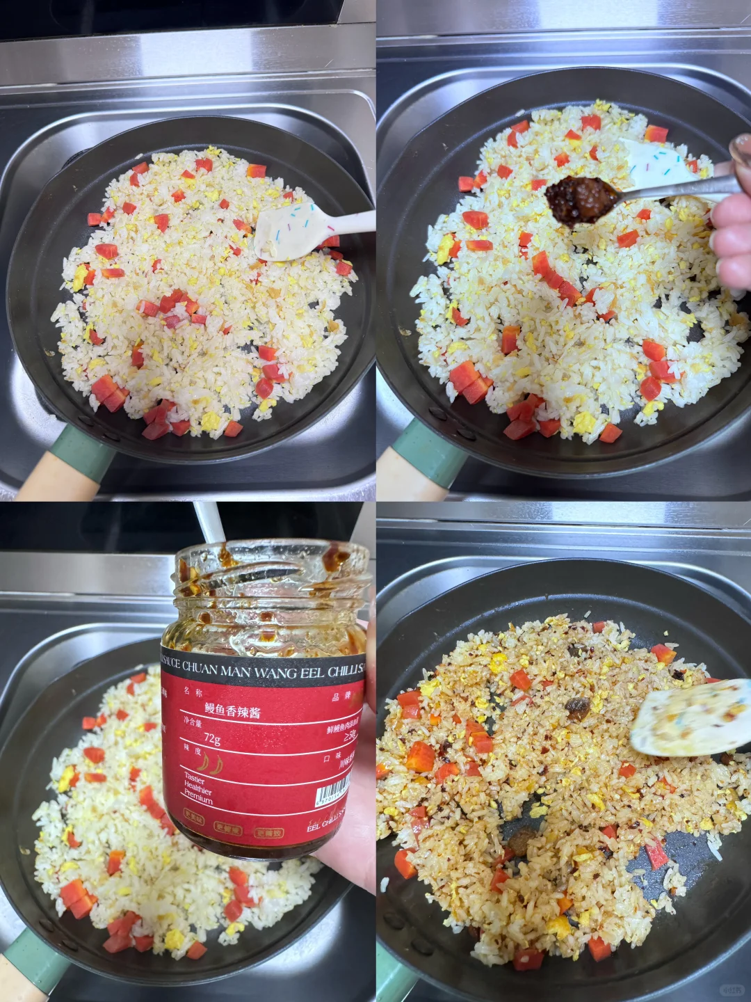 又又回购了川鳗王鳗鱼酱,这次换个新吃法,炒饭 食材就5样,做法简单,咔咔香~ 鳗鱼香辣酱、米饭、鸡蛋、胡萝卜、生菜 平底锅少油,放入鸡蛋炒香,加入米饭和胡萝卜🥕 灵魂拌饭酱~川鳗王鳗鱼香辣酱,最后加入生菜即可 简直是饭扫光,香喷喷 川鳗王鳗鱼香辣酱,有大颗粒鳗鱼肉,75g就有50g鲜活鳗鱼肉,富含DHA、EPA、维生素等多种营养元素,0色素0香精0防腐剂,吃起来放心。冰箱常备的下饭酱,精致小瓶装避免久放变味和细菌滋生,专用小勺干净方便,喜欢拌饭炒饭的姐妹可以安排上了