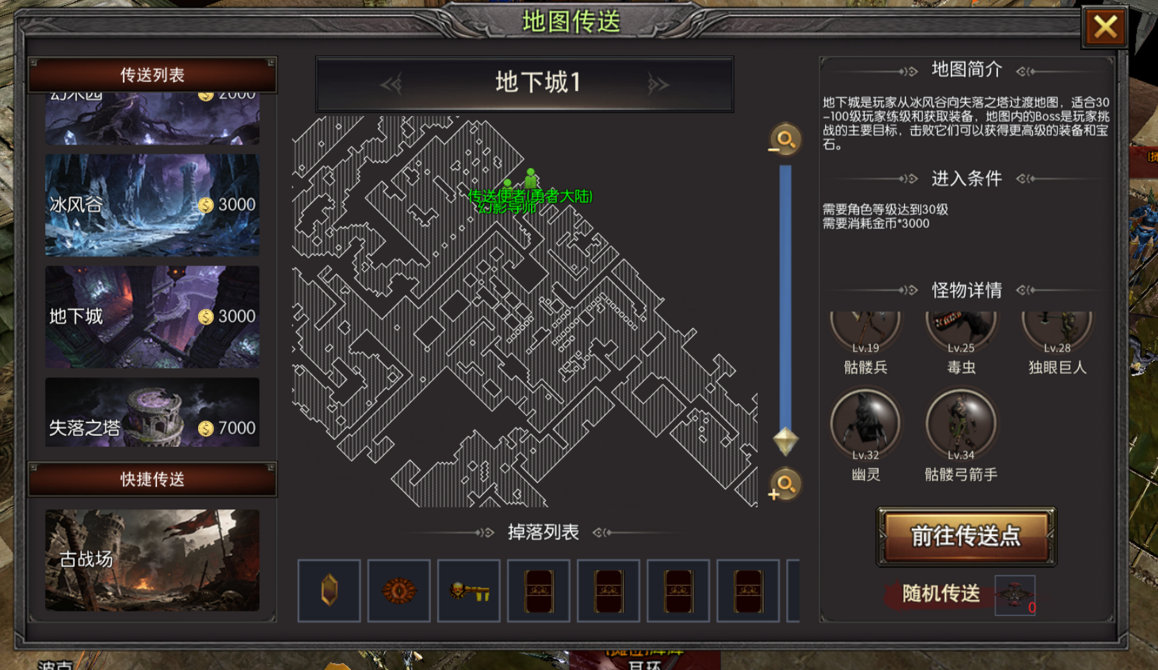 冰风谷环境寒冷充满了冰系怪物,但部分区域怪物宓需要谨慎前进。冰风谷是玩家向更高级地图过渡的重要地图,适合10-100级玩家练级和获取装备。